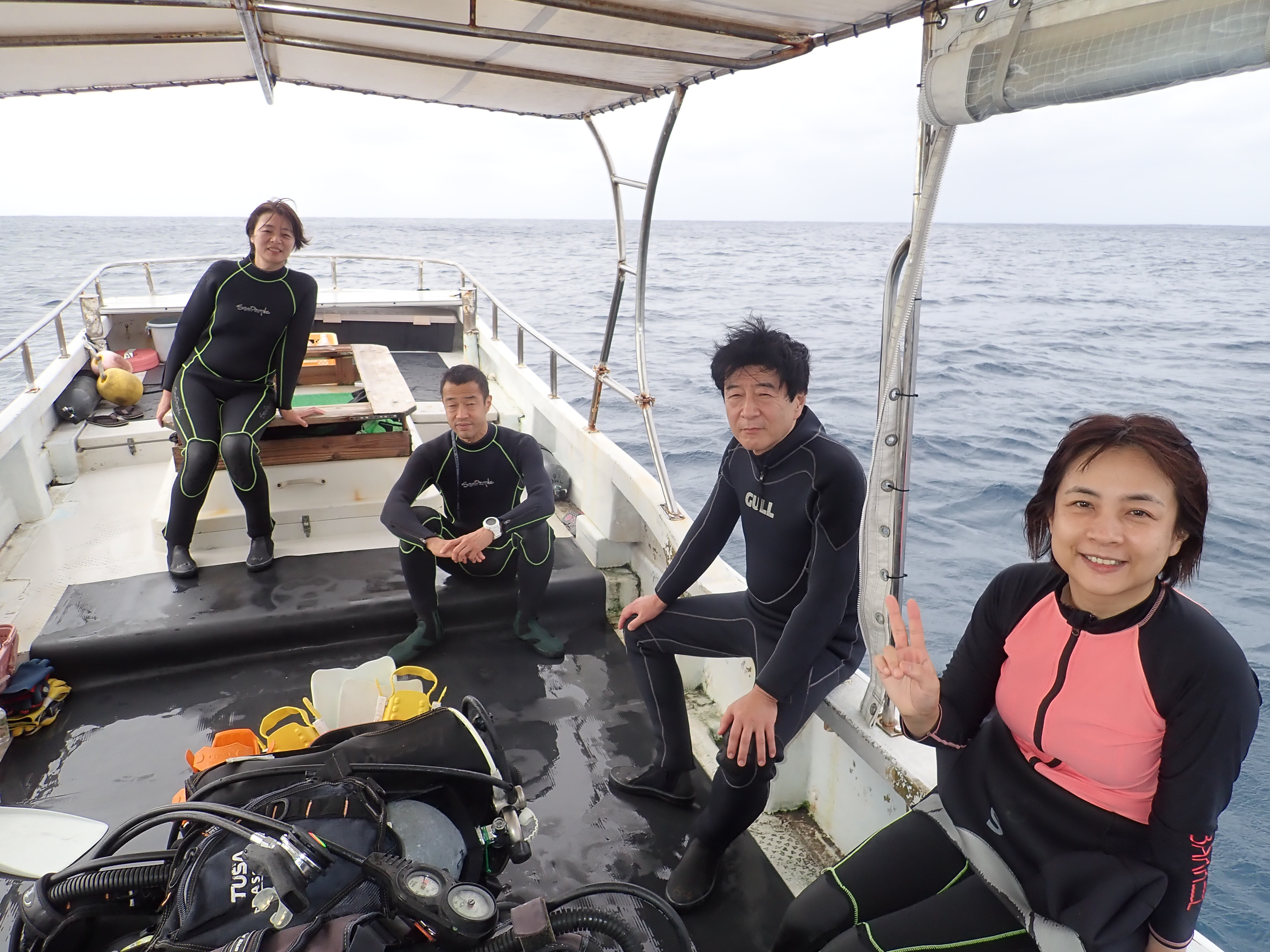 も出てポカポカ陽気なので船上は快適ですが、水中が寒い!