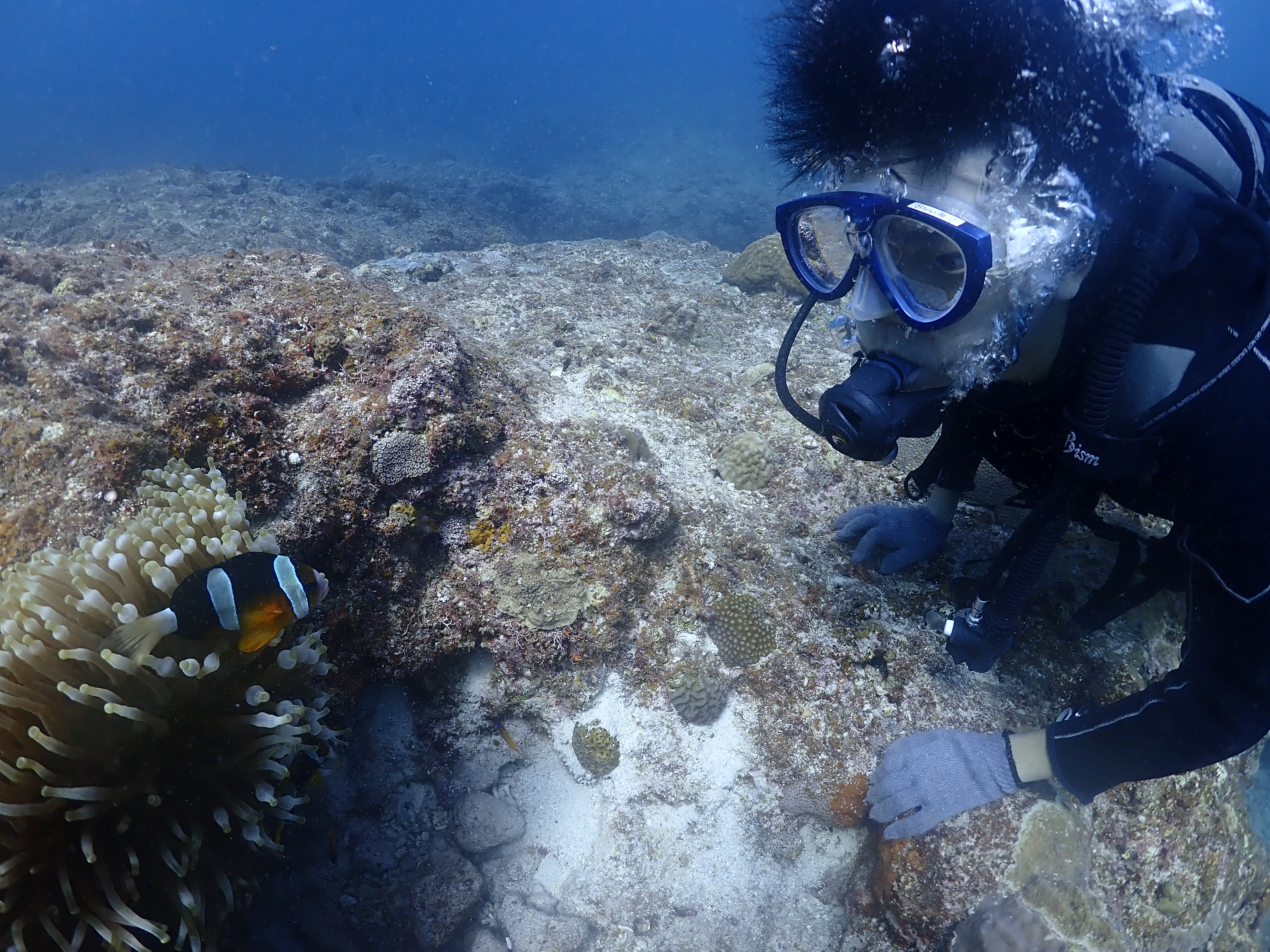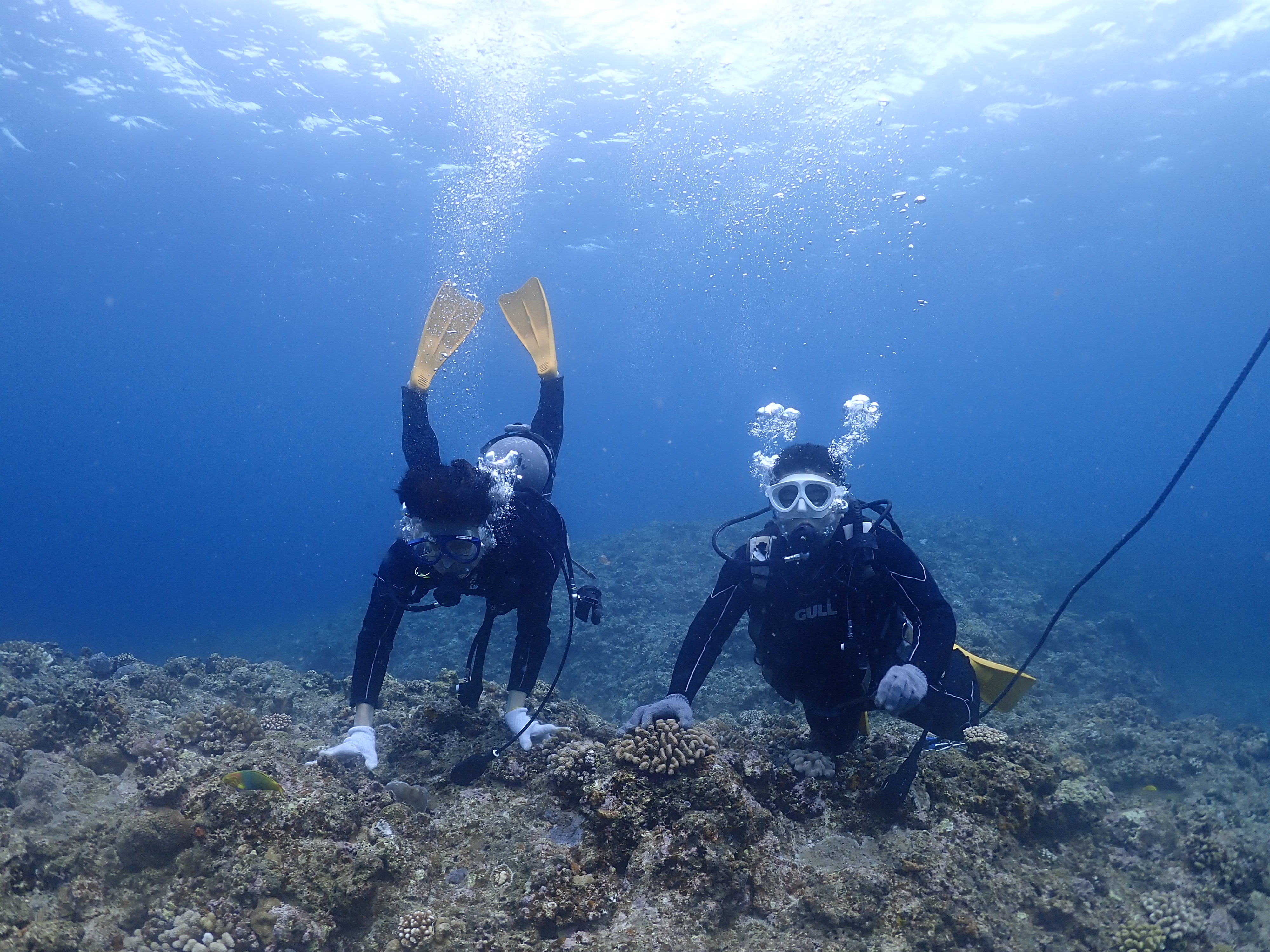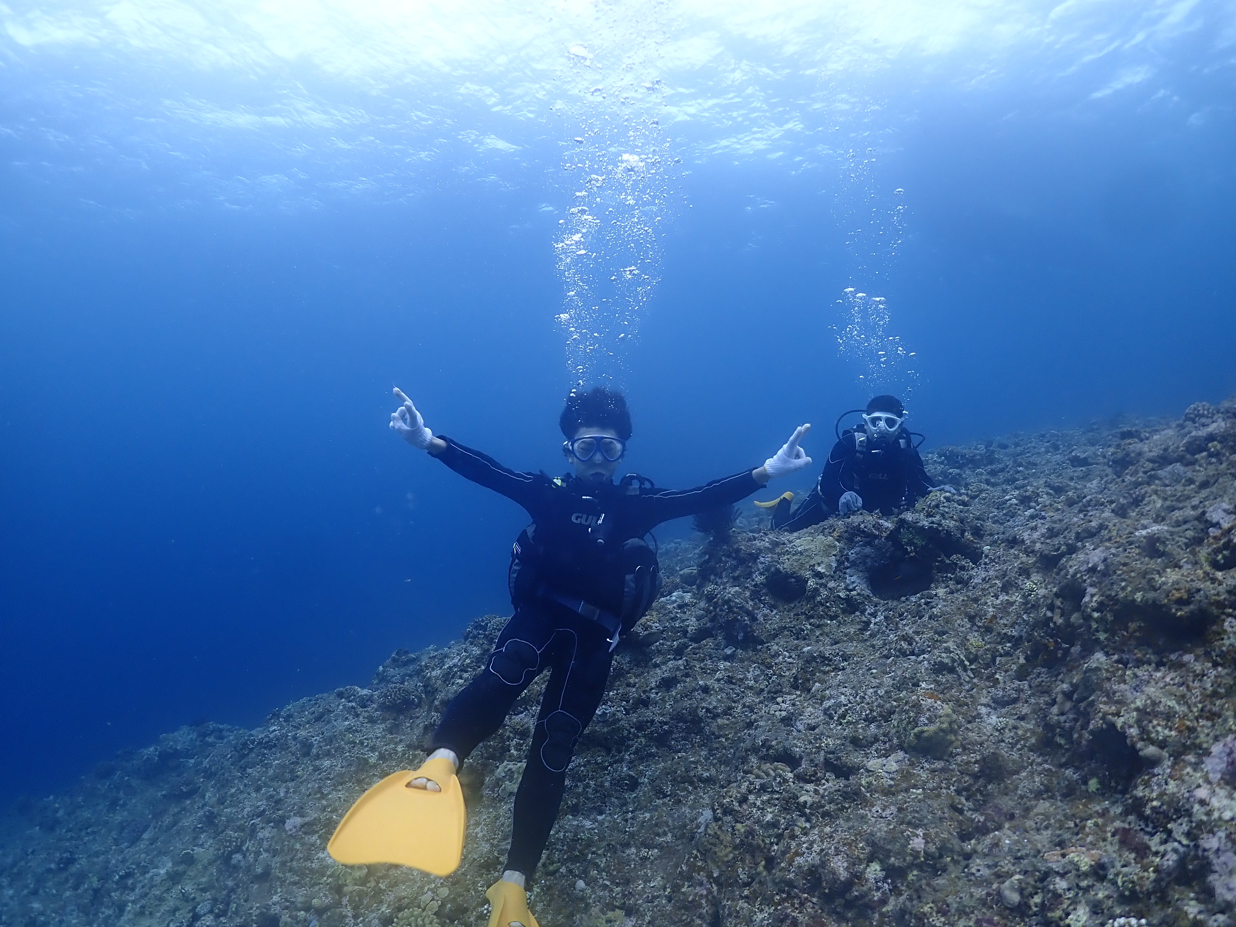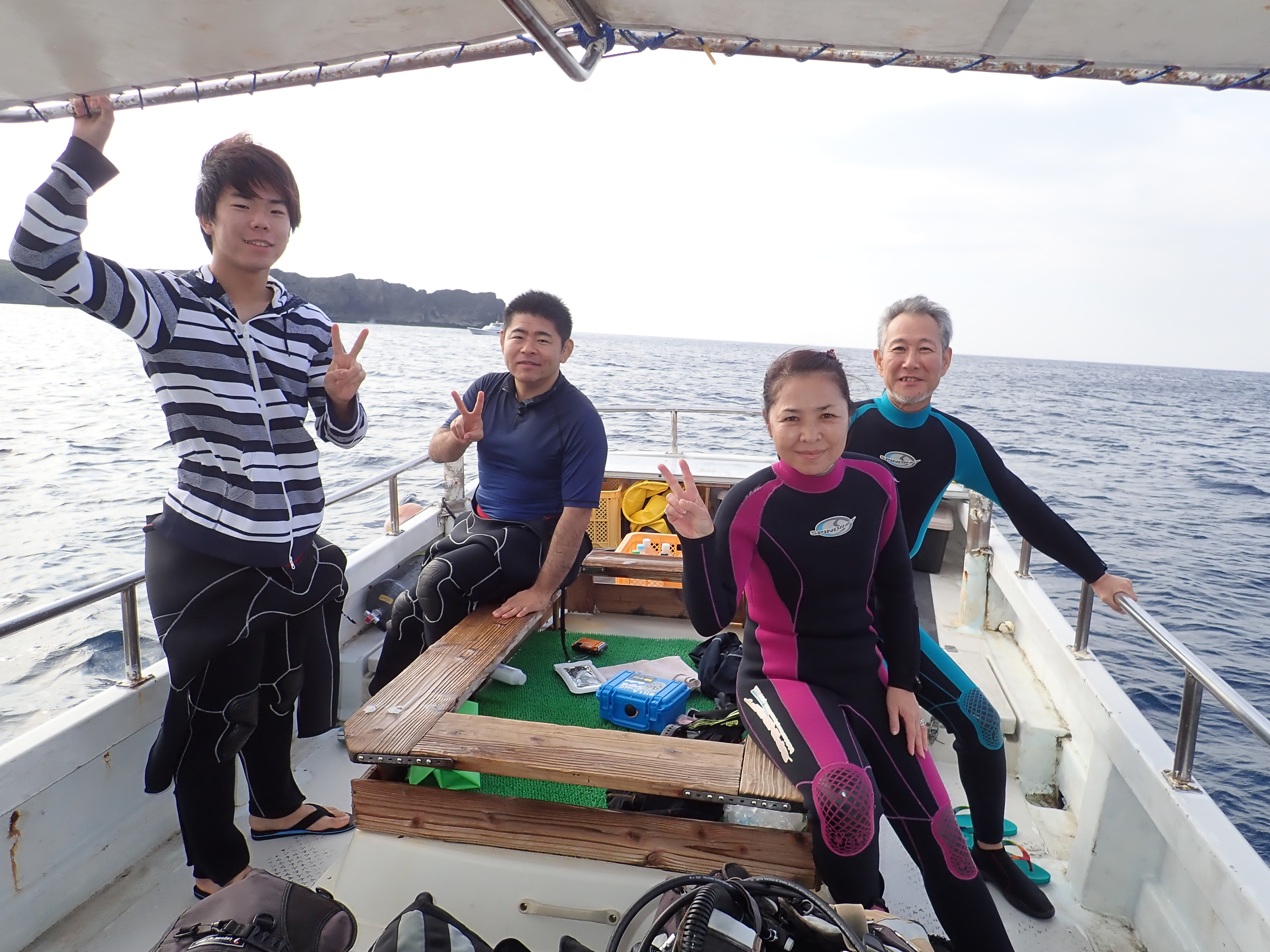 リピーターのファンダイバーと初めての体験ダイビングにご参加の親子さんと
