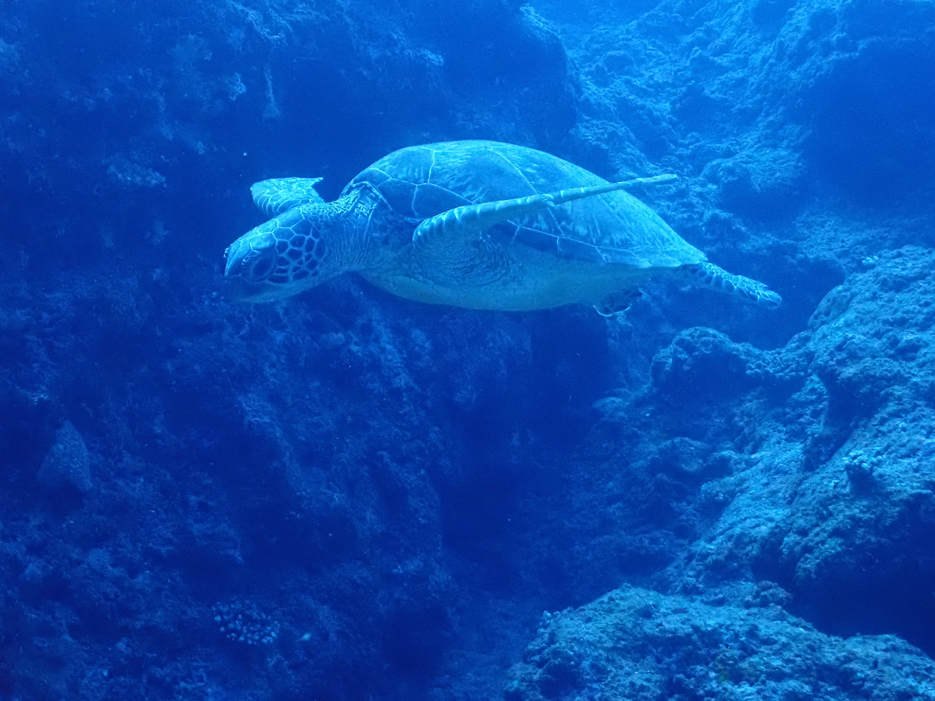 今日はカメが見たいな~と泳ぎ始めると直ぐに正面からカメさんが![]()