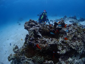 南方系のスズメダイ等が沢山いて人よりもとても大きいユビエダハマサンゴがびっしり![]()