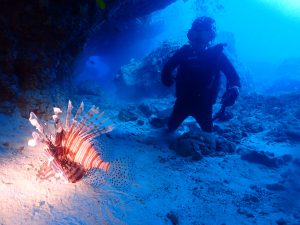 L字アーチは流れも無く透明度バッチリ 大きなハナミノカサゴと一緒に