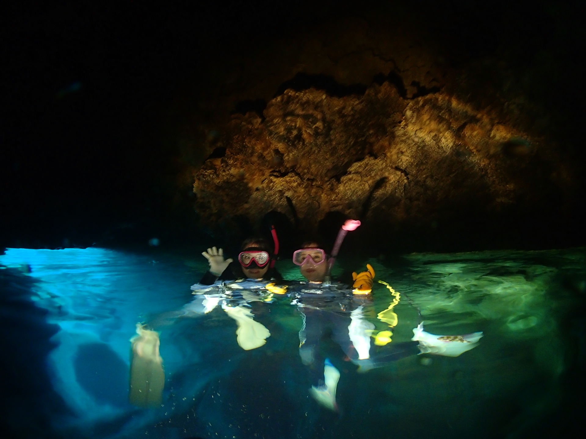 初め洞窟入る時は不安が有った様ですが水面で一息ついたら『落ち着きました