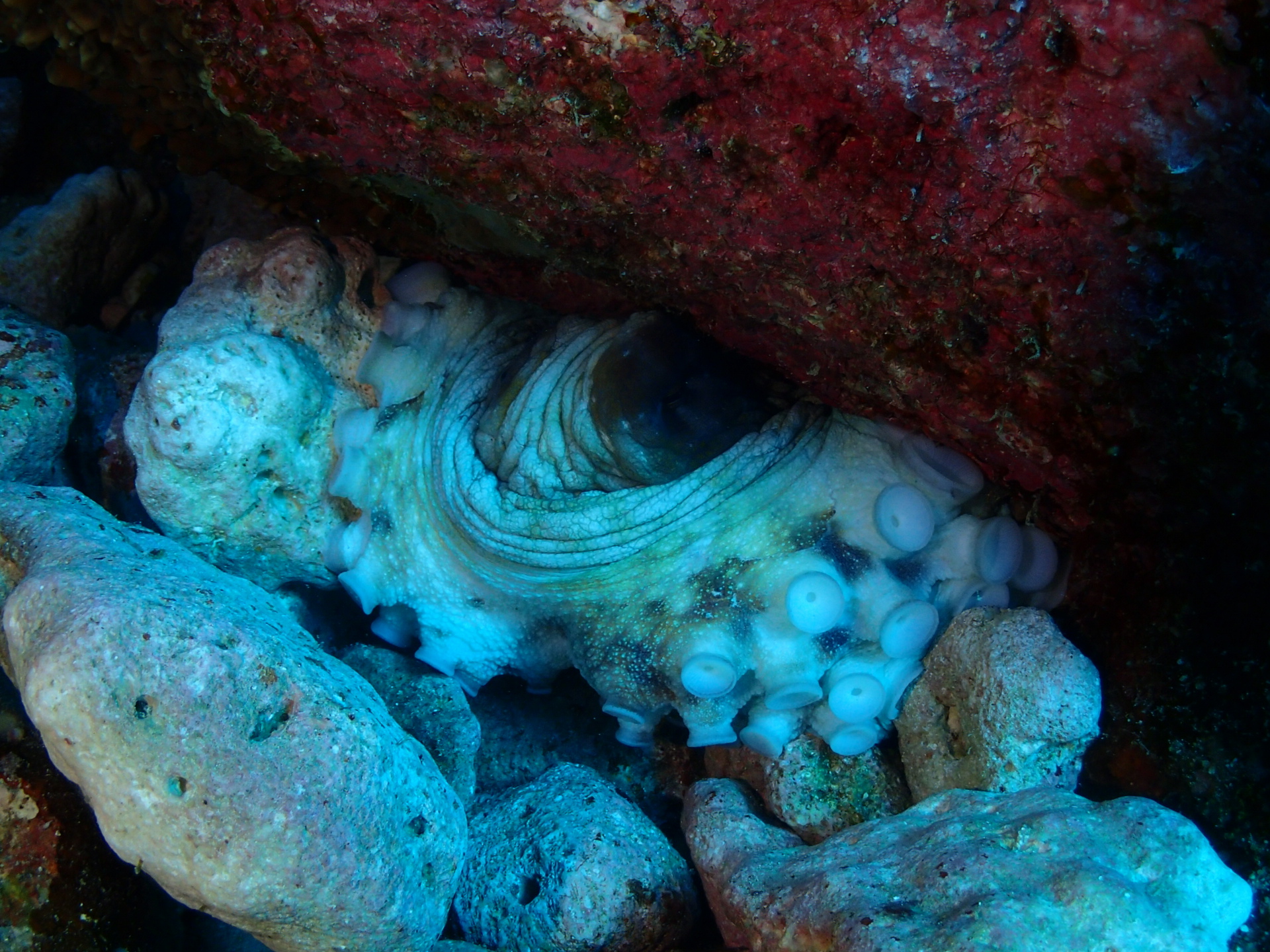 アーチの下で皆で記念撮影&1kg位ありそうなシマダコさんが・・・