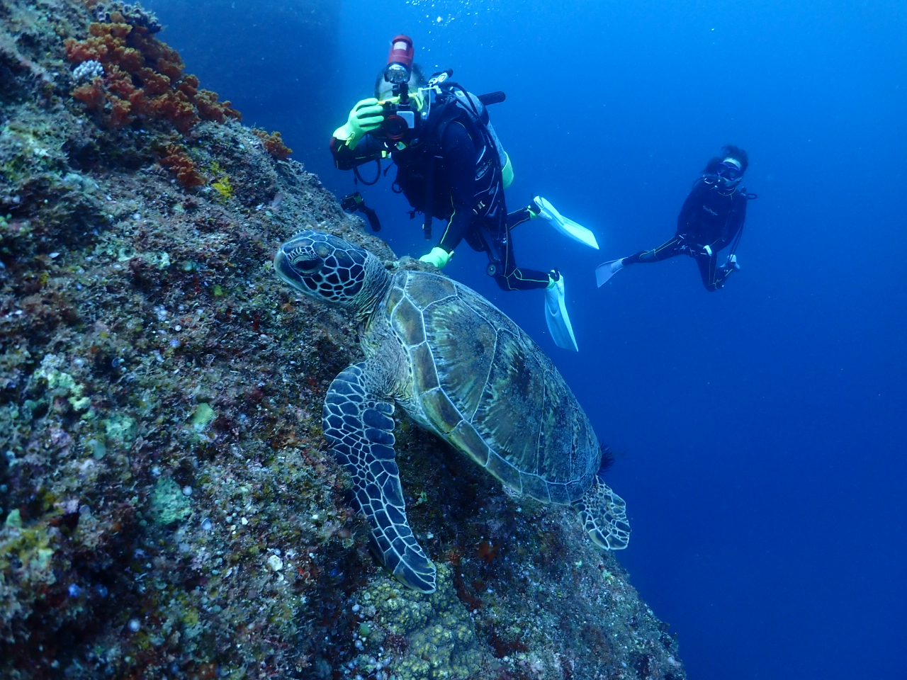 本ドロップではネムリブカ、ロウニンにアオウミガメと大物に恵まれゲストも大喜び