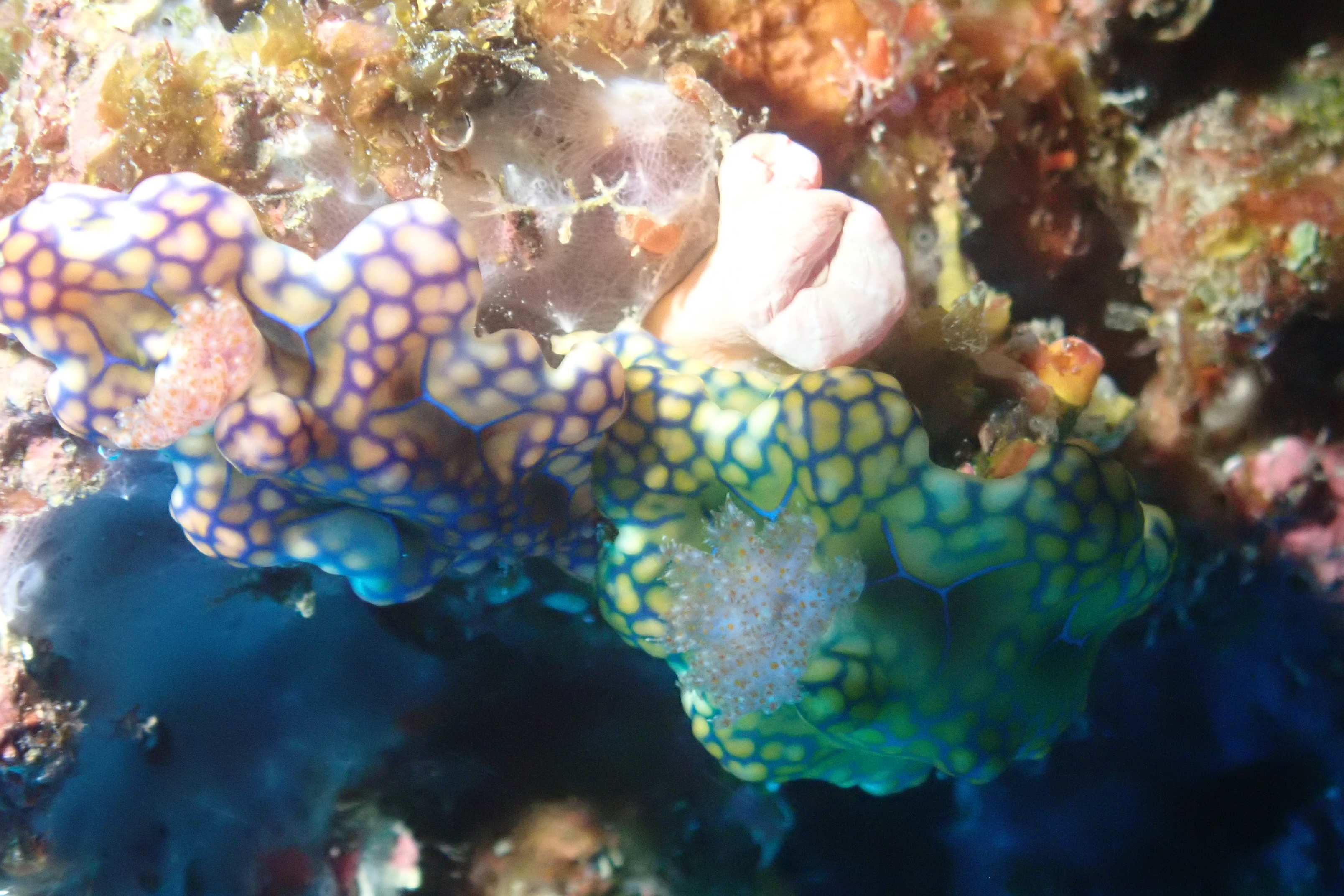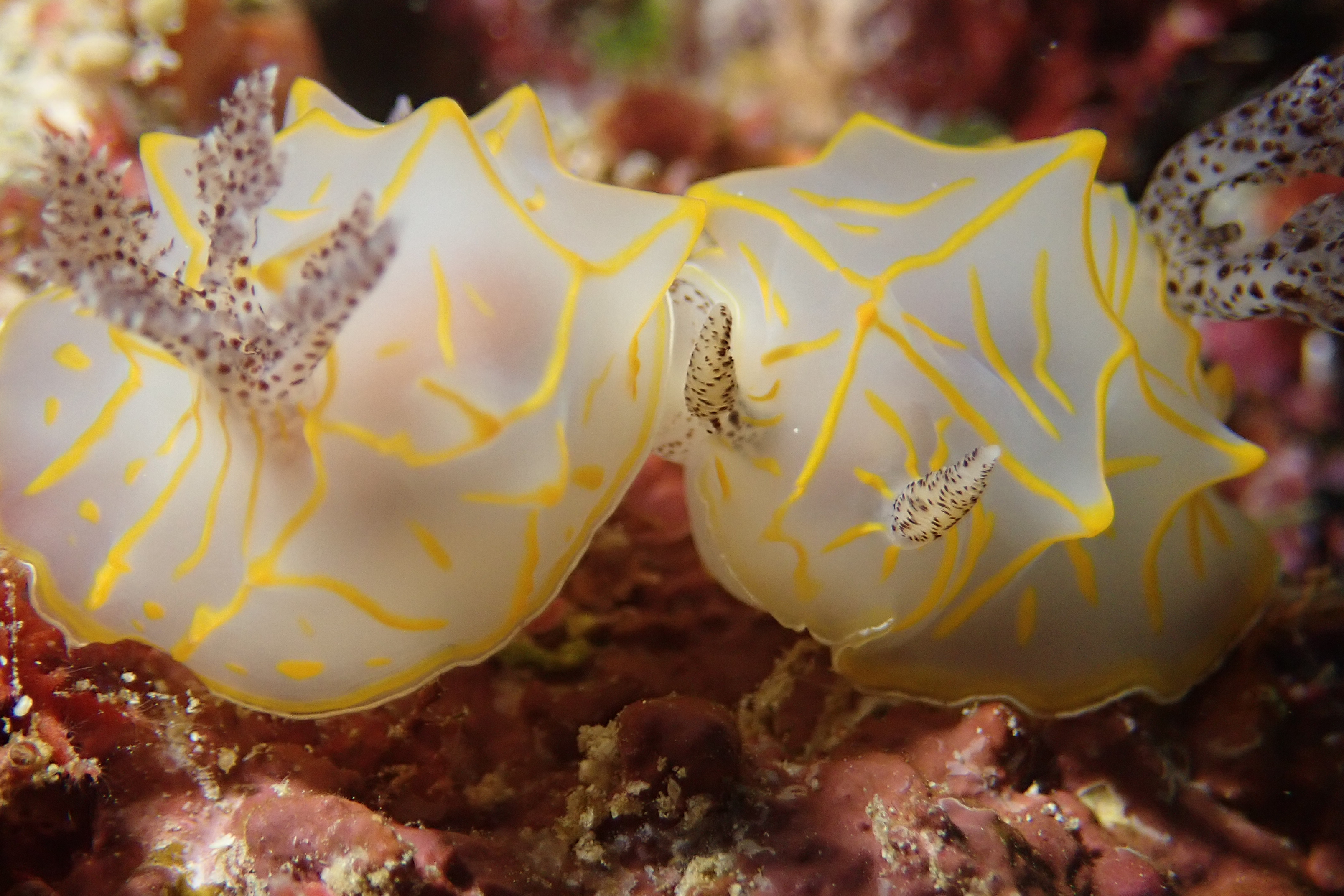 ミアミラウミウシの交配 直ぐ近くに1匹居たのですが残念 と シロタエイロウミウシ