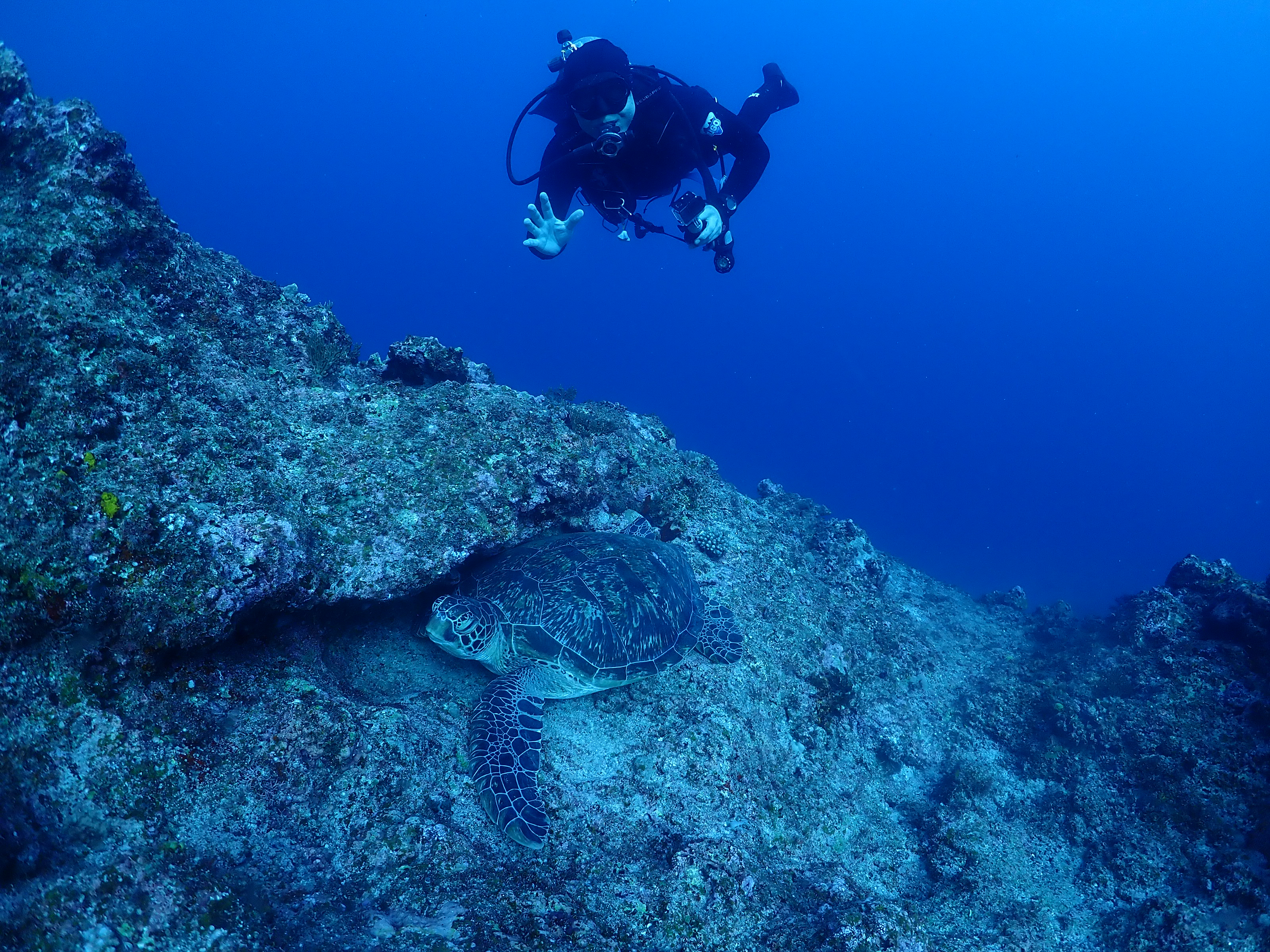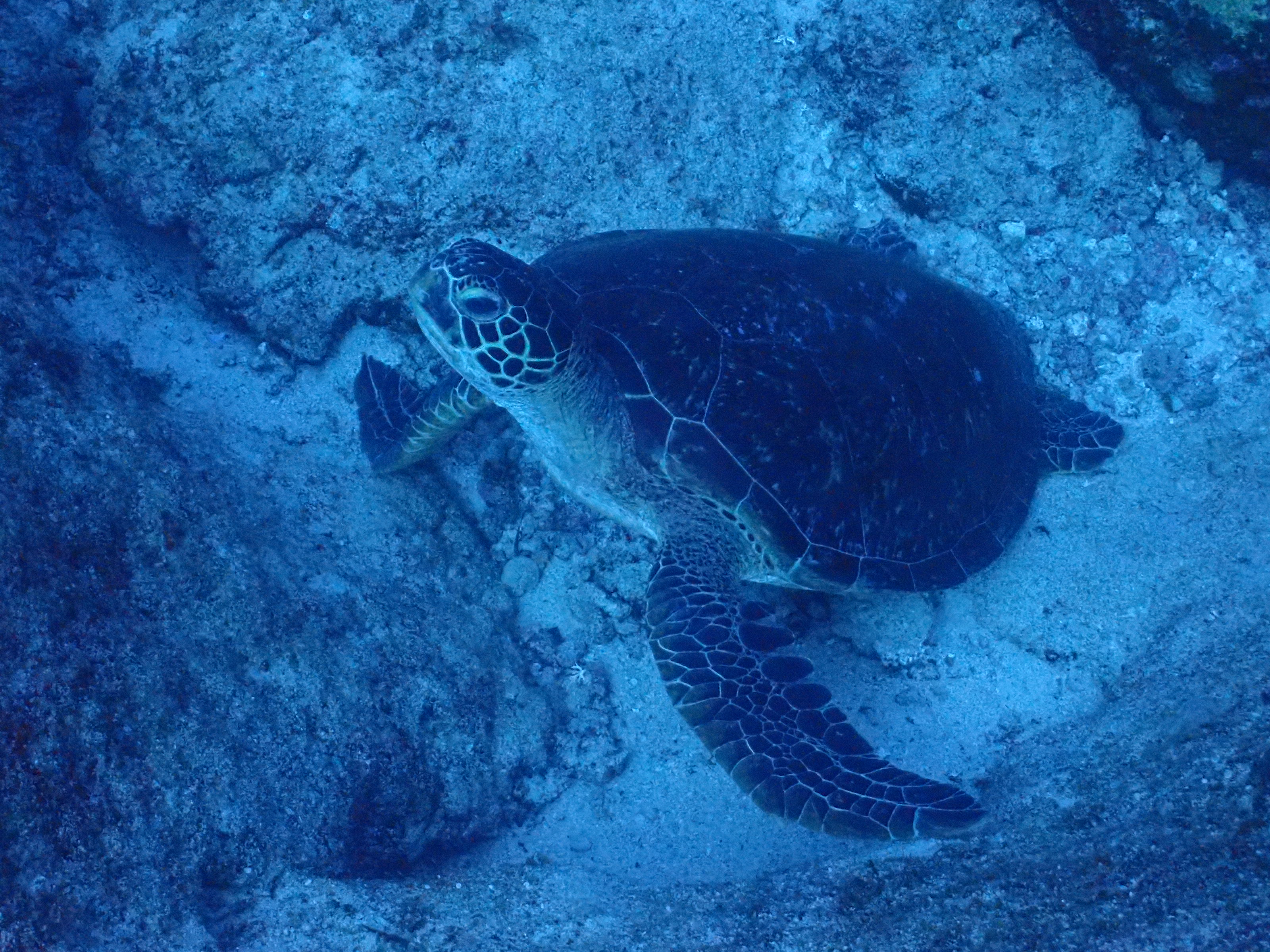 地形の後は1m位あるアオウミガメさん2匹とご対面