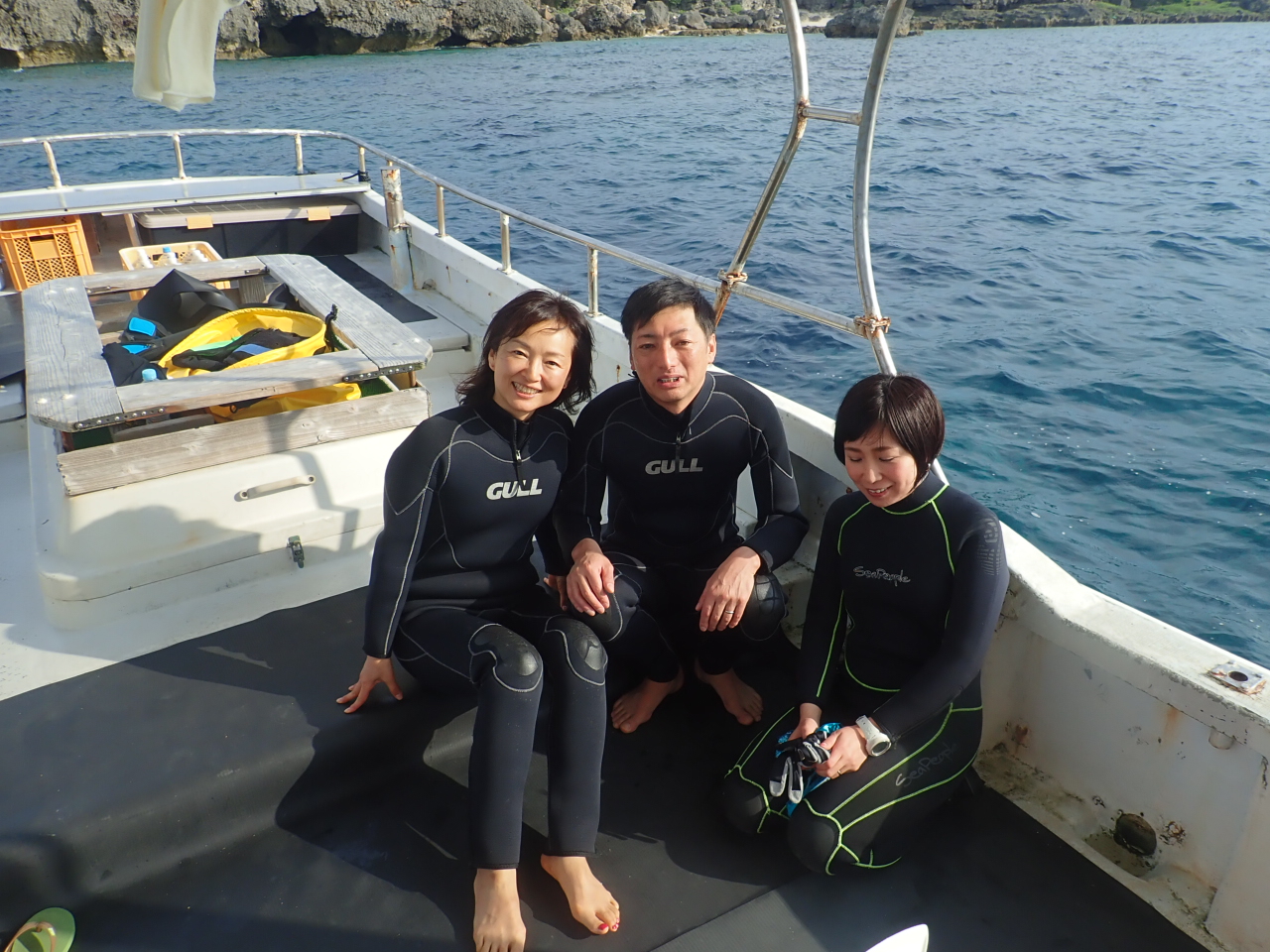 潜る前の皆の1枚は、まぶしくて目をつむっちゃいましたか![]()