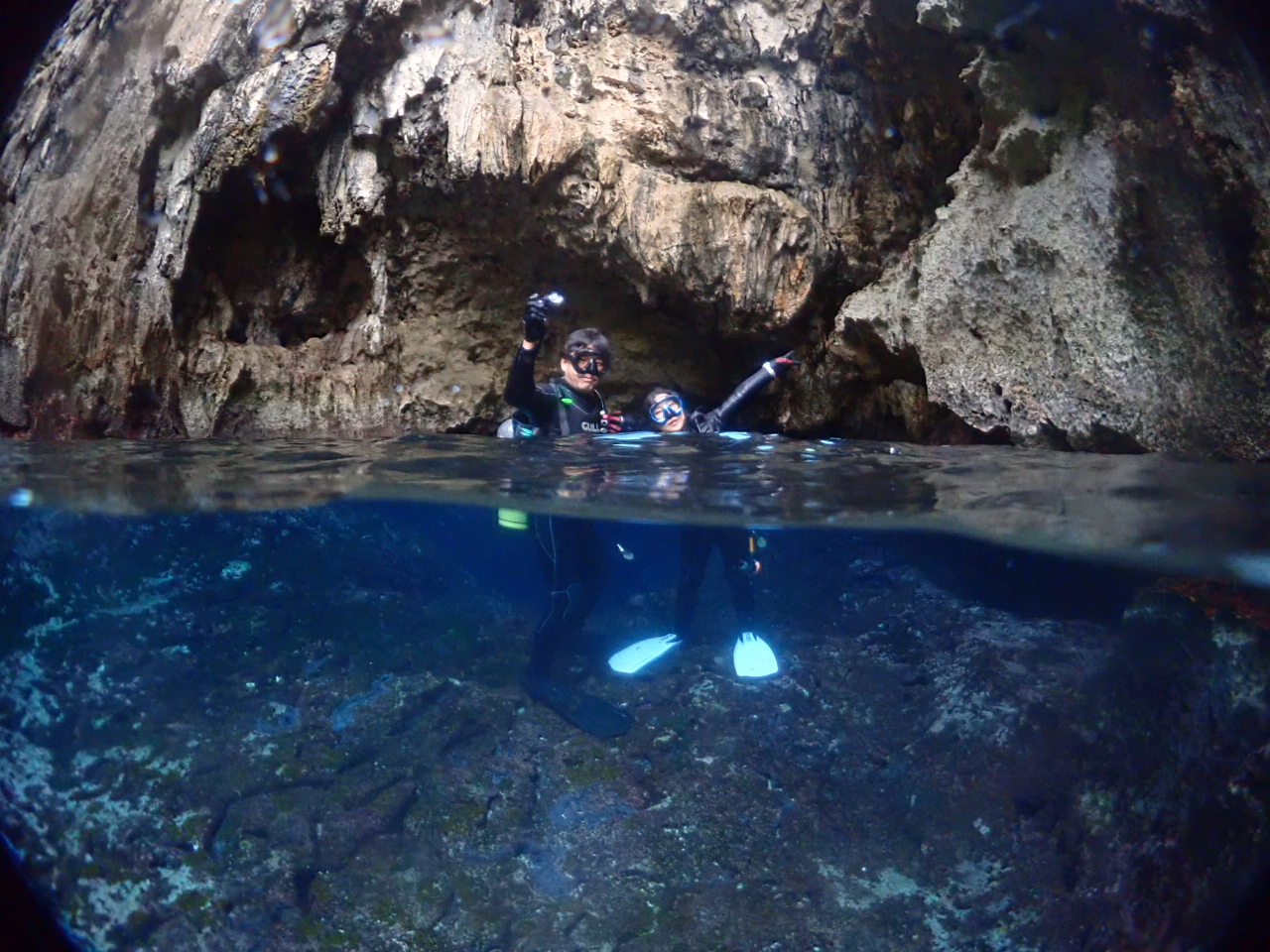 今日は洞窟の入り口に沢山のキビナゴが群れていてゲストも水中で叫んで喜んでました![]()