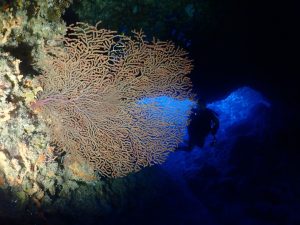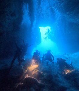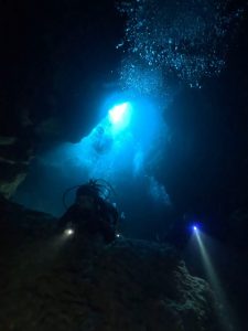 縦穴とダイバーさんを一緒に眺められる先頭の特権