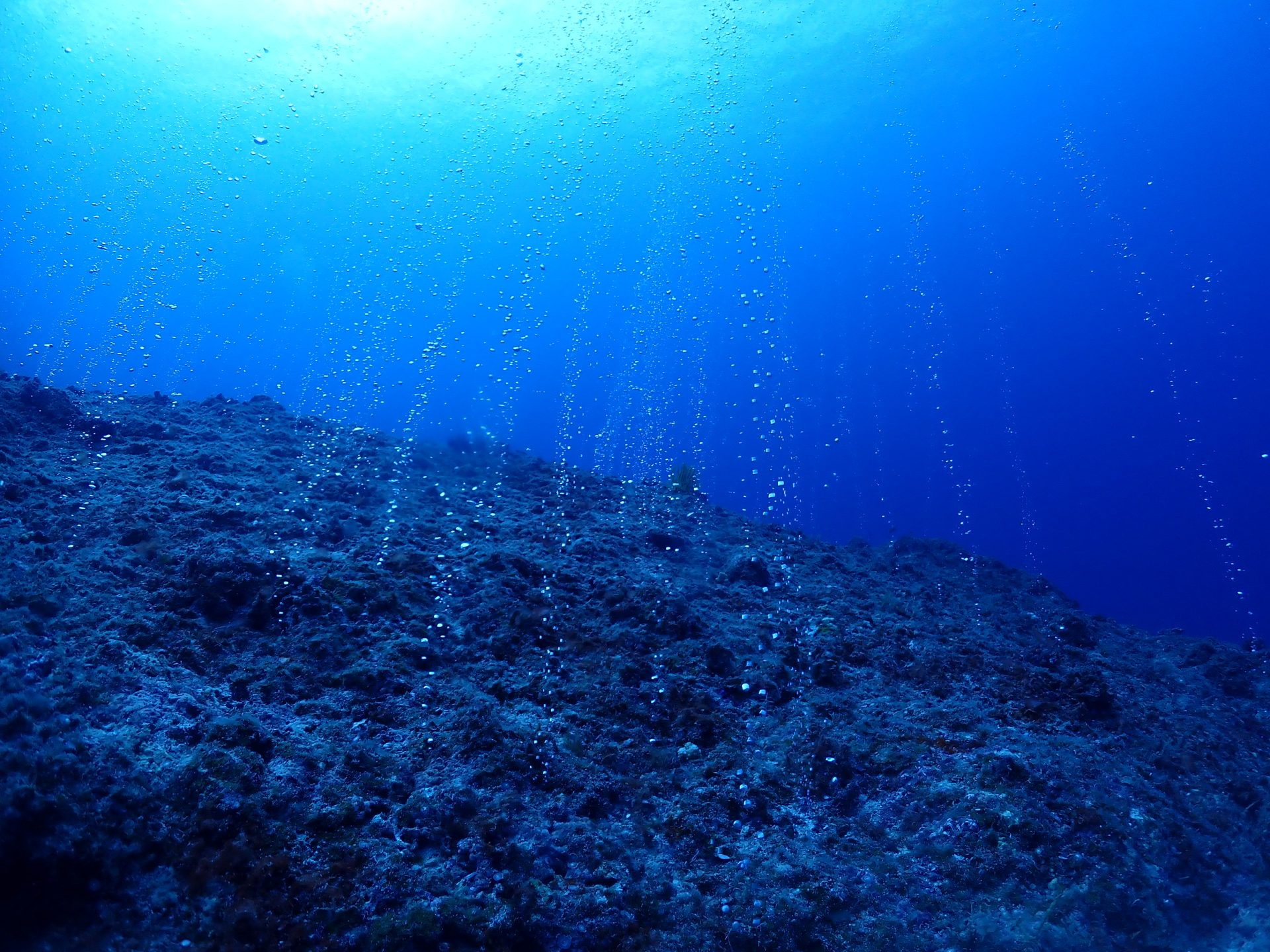 洞窟を出ると下から上がってくる泡がとても綺麗~
