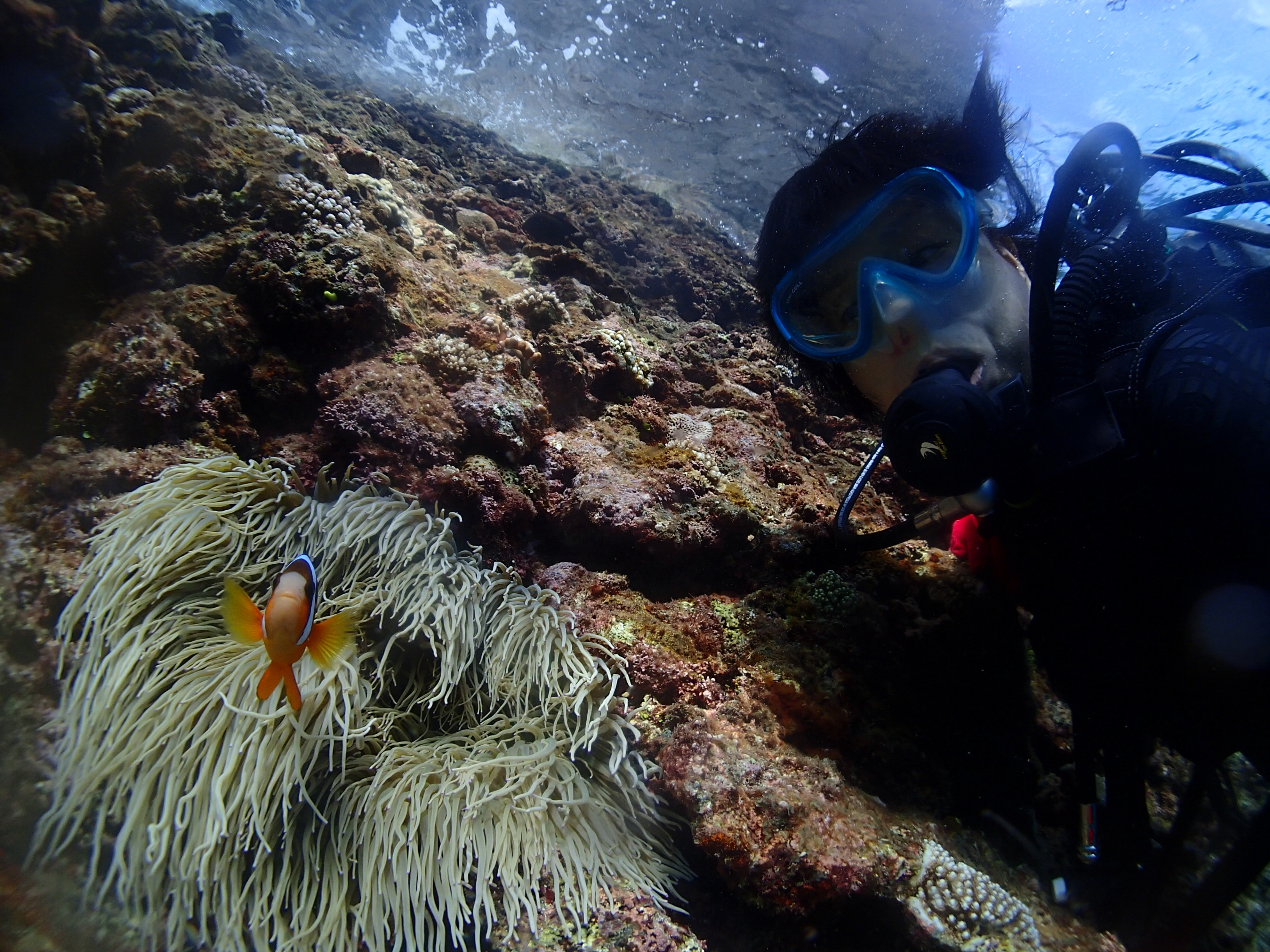 ちょっぴり深いところのちっちゃいクマノミちゃんにも会いにいきました。