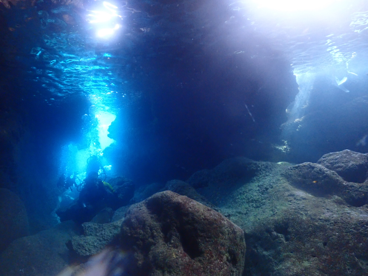 浅いところで泳いだ後は青の洞窟探検へ![]()