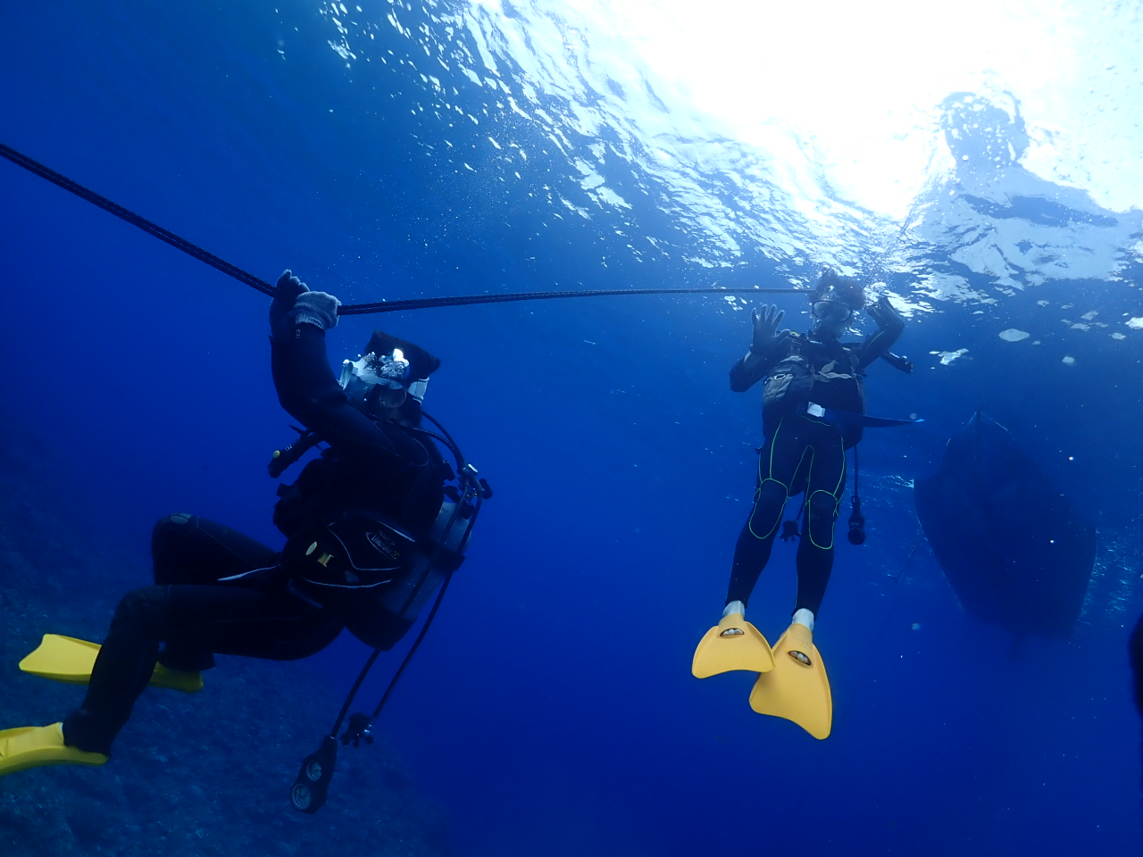 社員旅行中のアクティビティで初体験ダイビングに挑戦の同期のお二人、