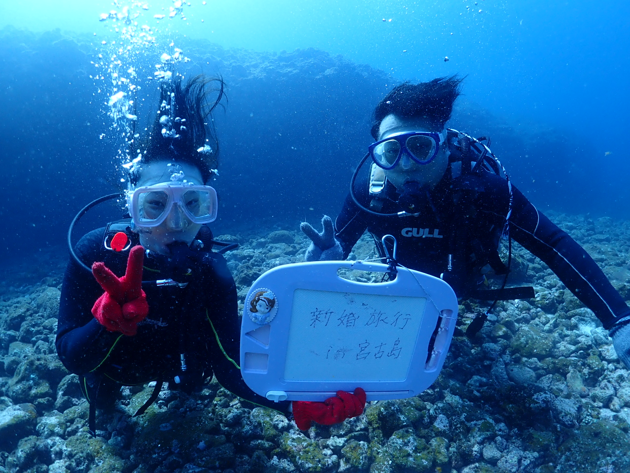 今日は、新婚旅行で体験ダイビングに初挑戦のお二人と、
