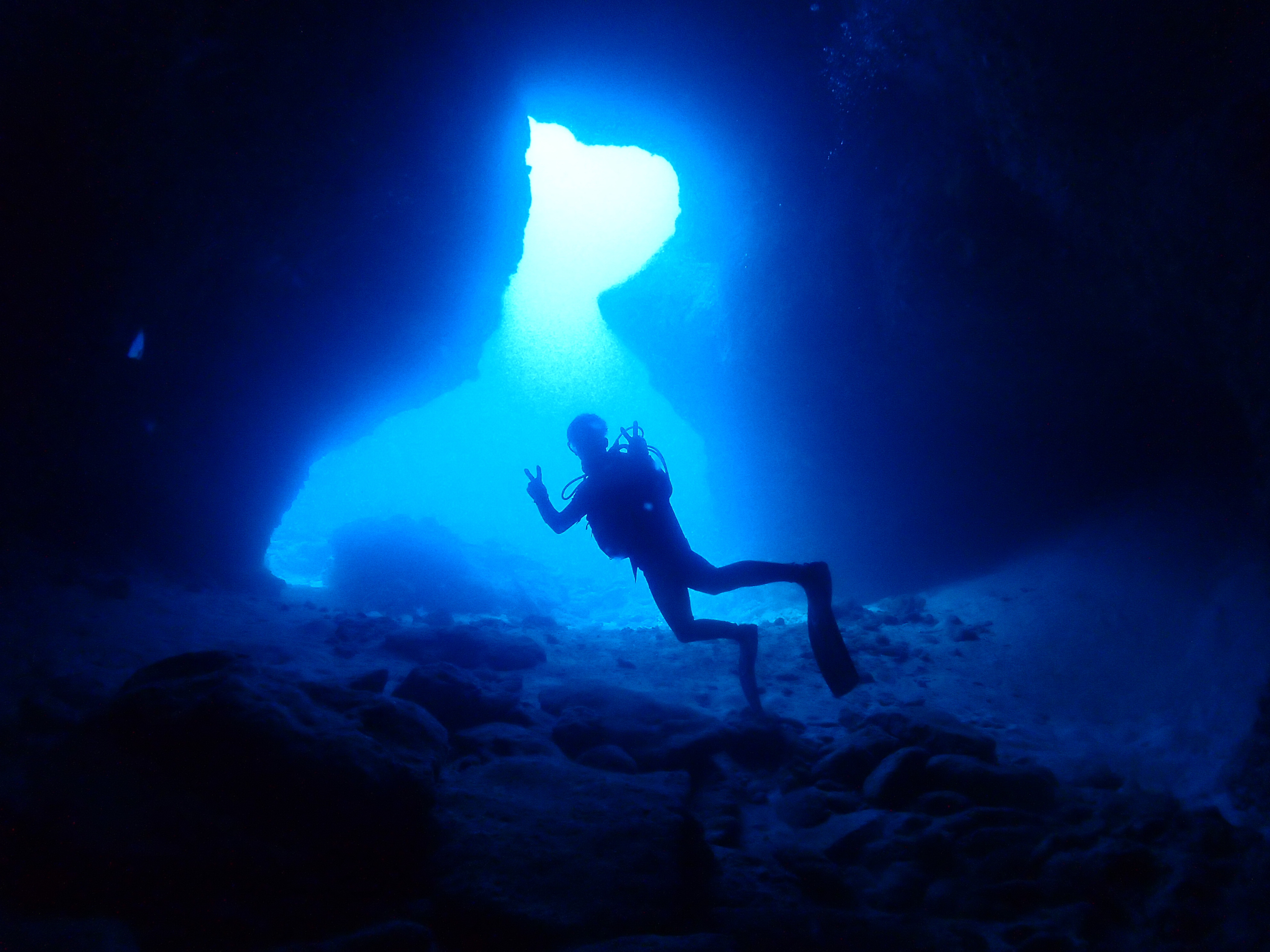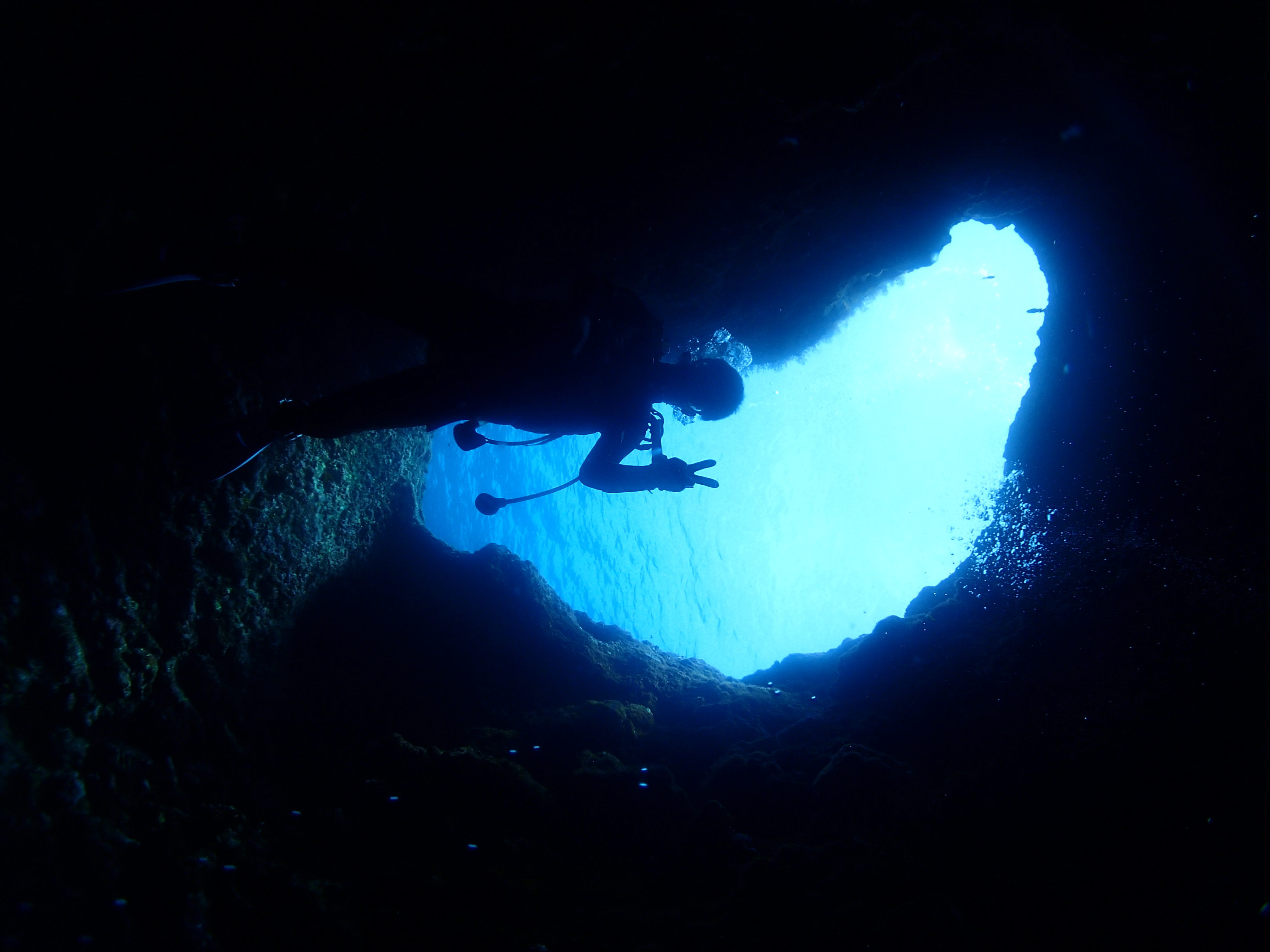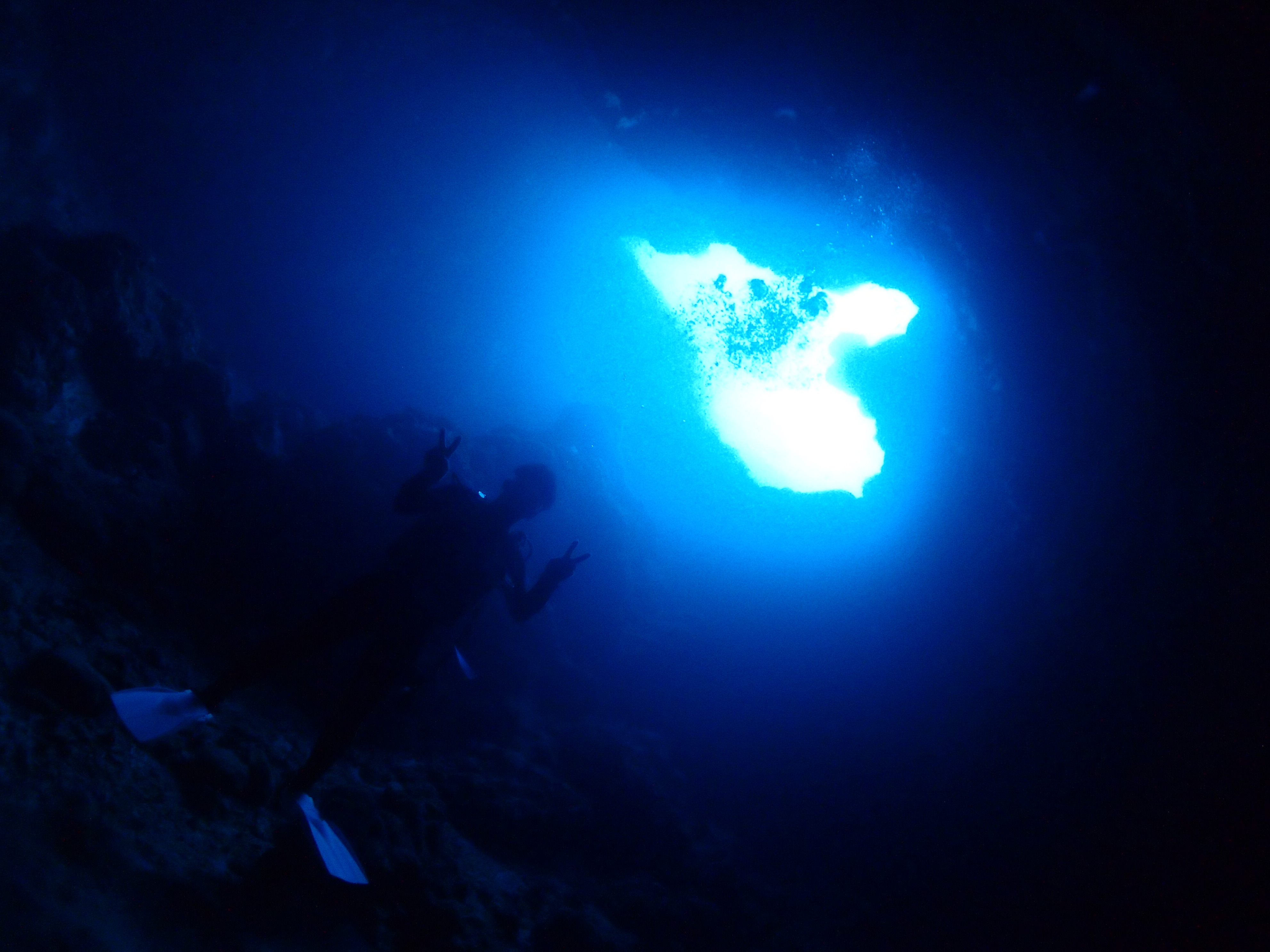 ダイビングで一番くっきり見えるのがココ、サンゴホール![]()