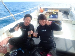 そんなこんなで今日も元気に伊良部島へ仲良しカップルと一緒にダイビングへ![]()