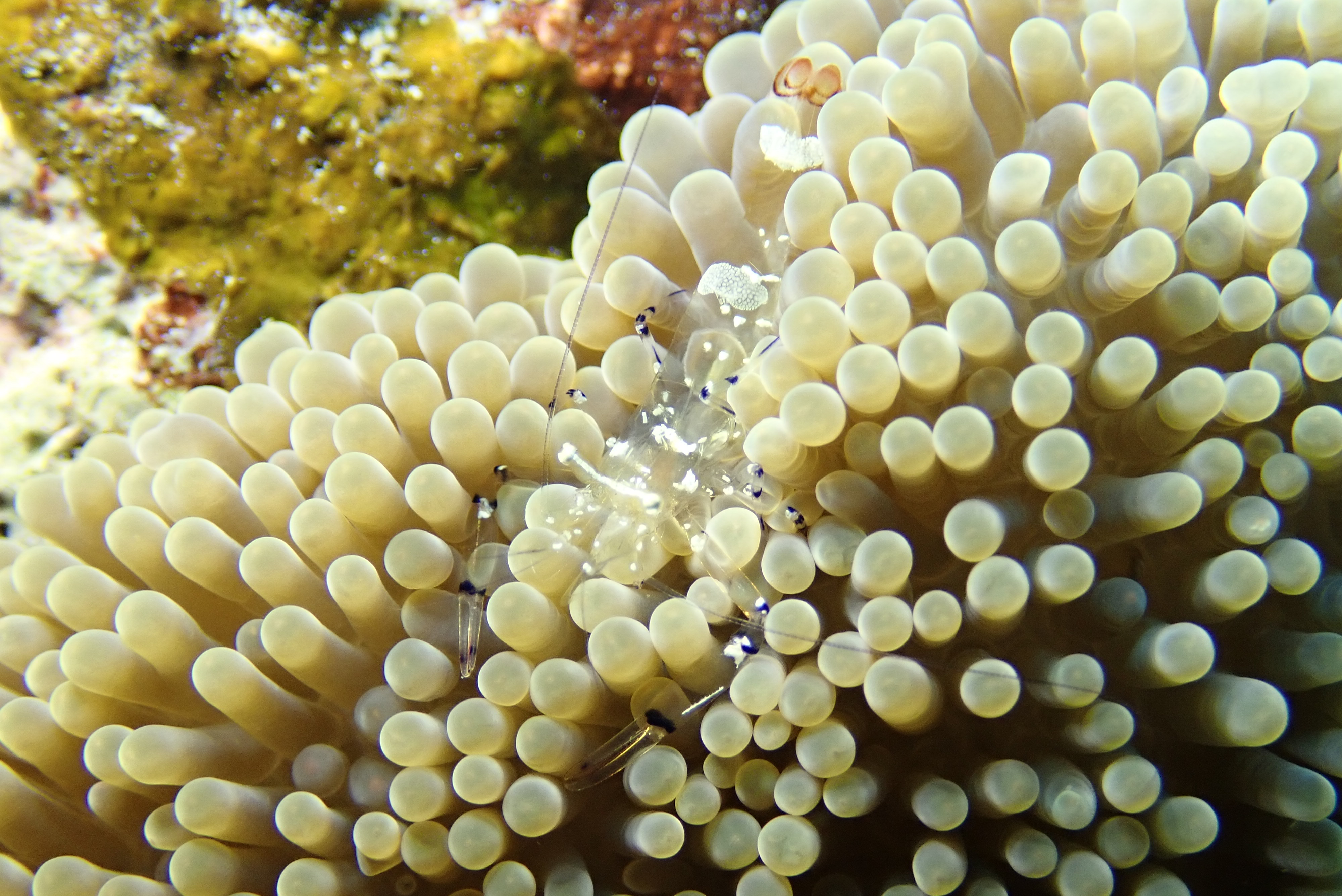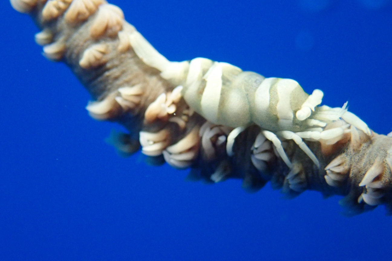 途中可愛くナデシコカクレエビとムチカラマツエビの撮影