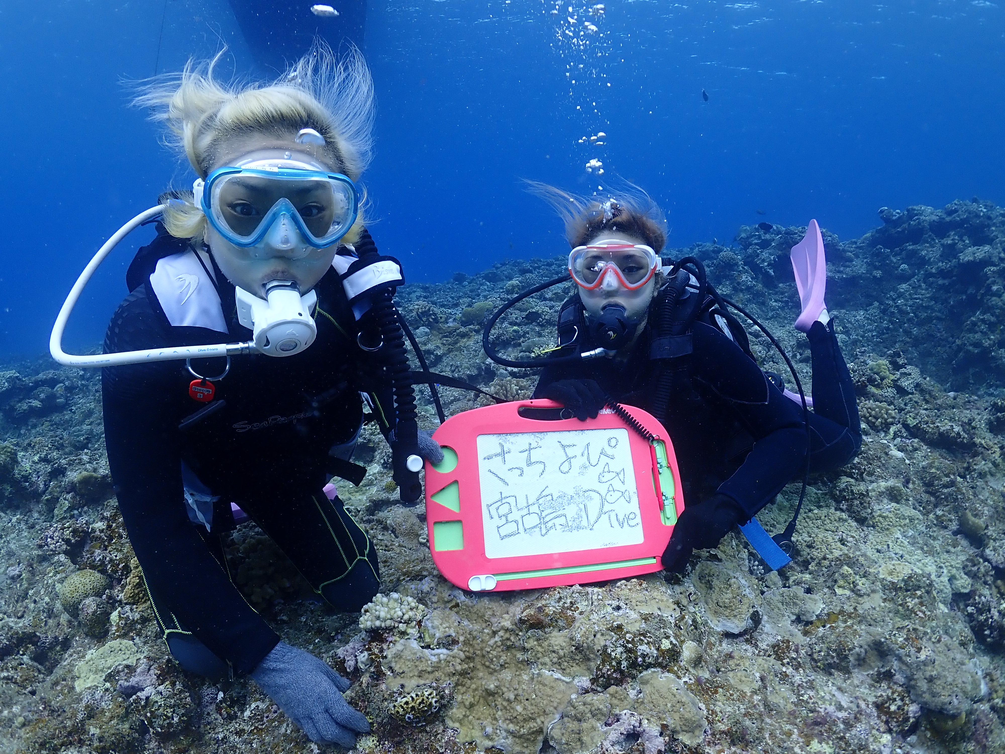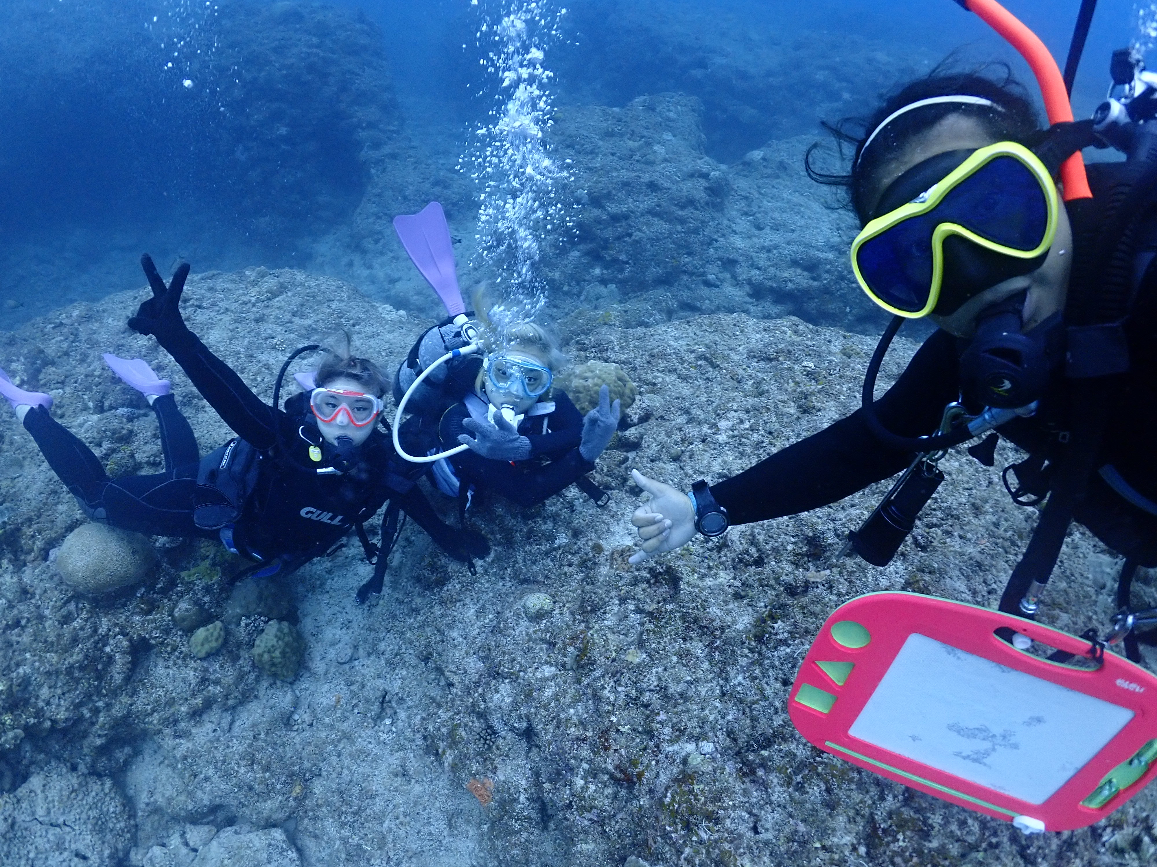 体験ダイビングもすんなり潜れたので存分に楽しんでました 海も青くて綺麗ですね![]()