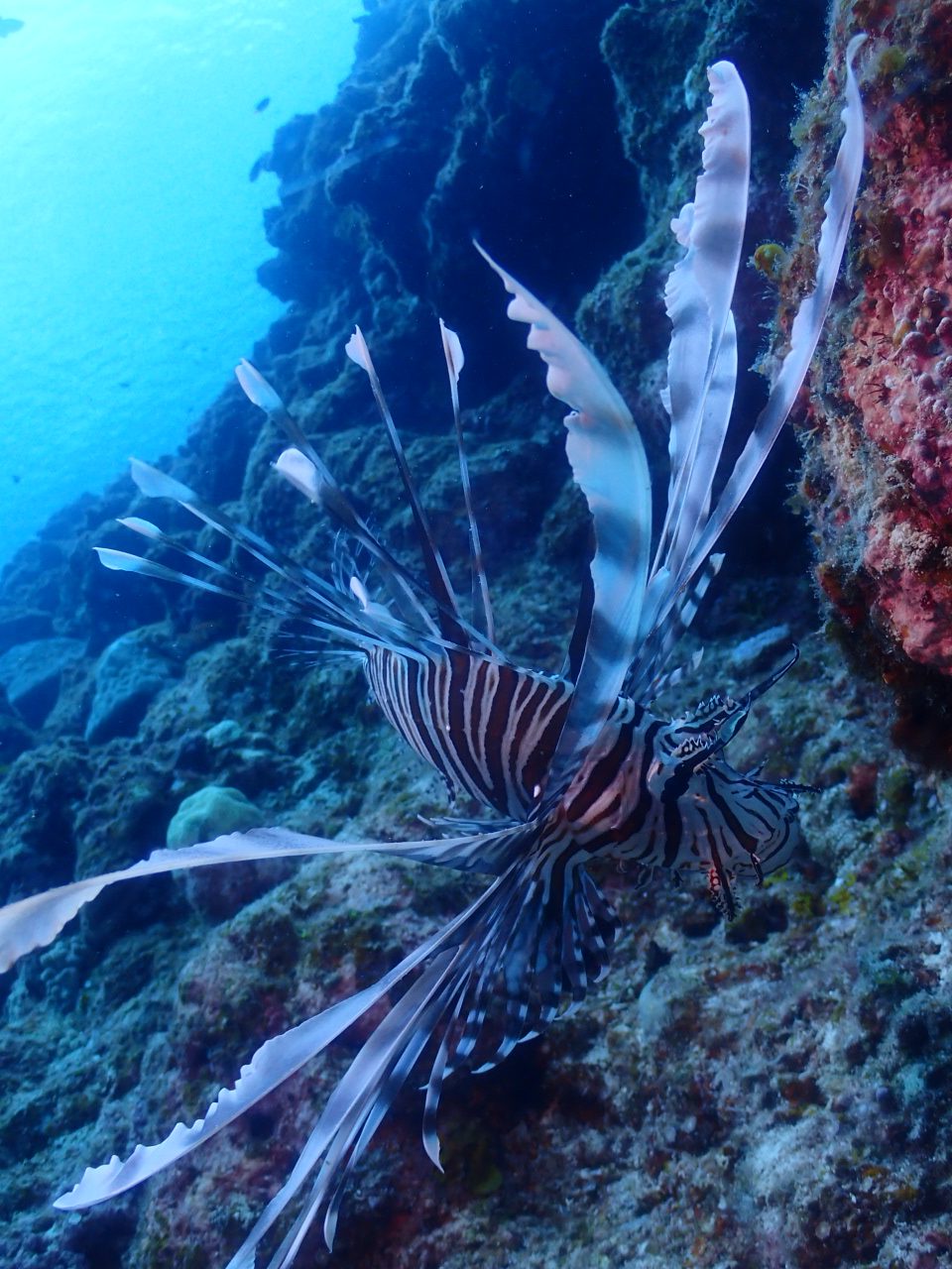キイロウミウシと羽ばたいている感じが格好いいハナミノカサゴ