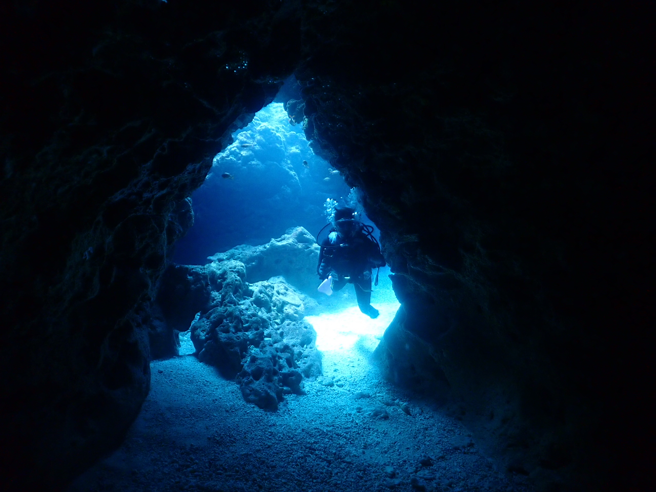2ダイブ目はお一人にライセンス持っているそうなので近くの洞窟へ![]()