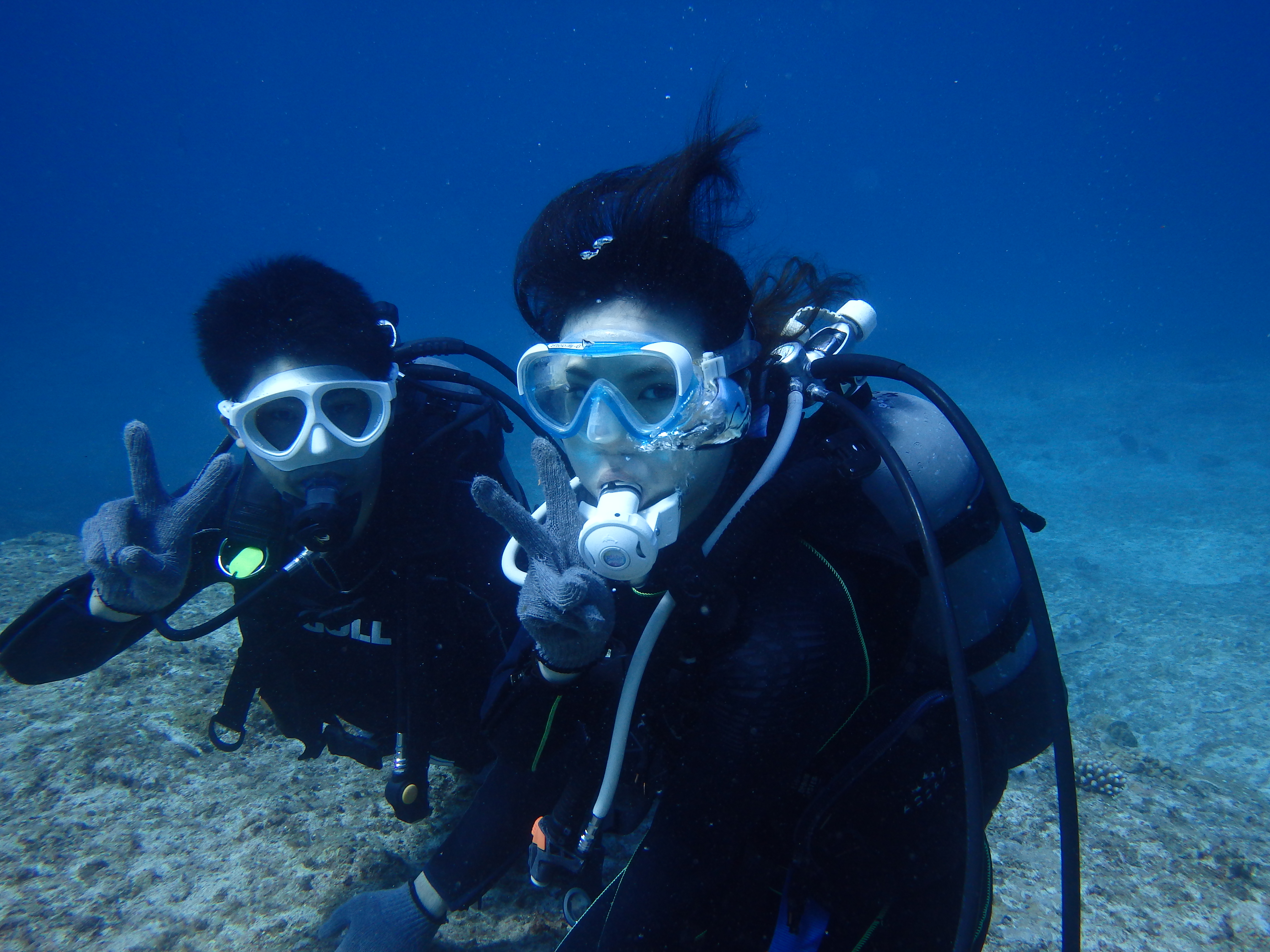 彼女さんは初めての体験ダイビングにご参加で彼氏さんは先日ライセンスを取得済み