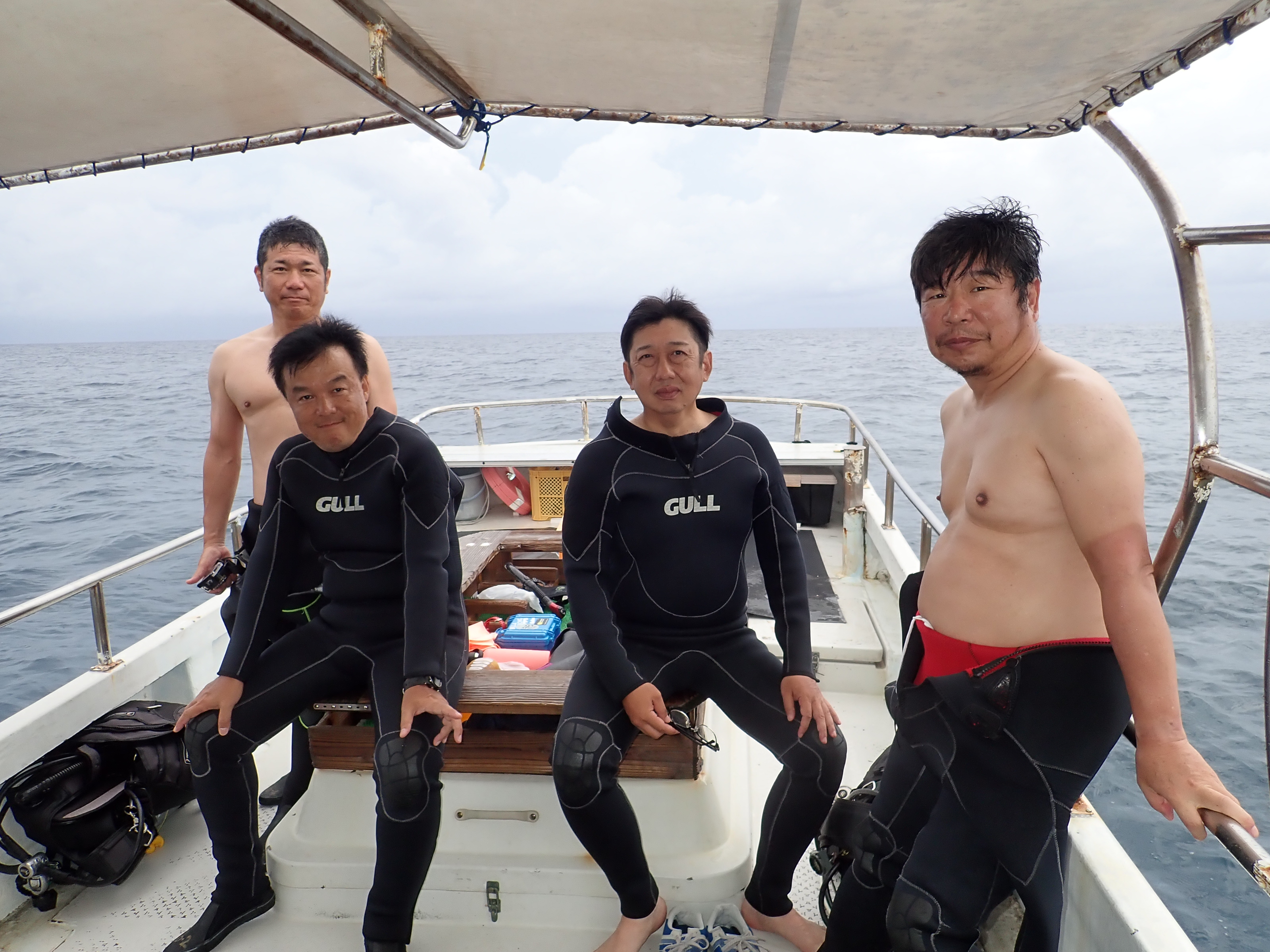天候:曇り時々雨 気温:27℃ 水温:27℃ 風向:南西 波高:1.5m