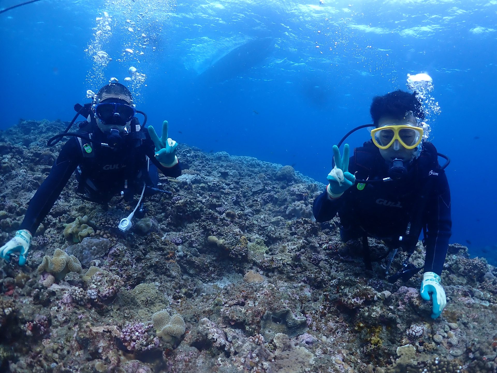 今日は社員旅行でいらした体験ダイビングチームと一緒に水中ツアーを楽しんできました