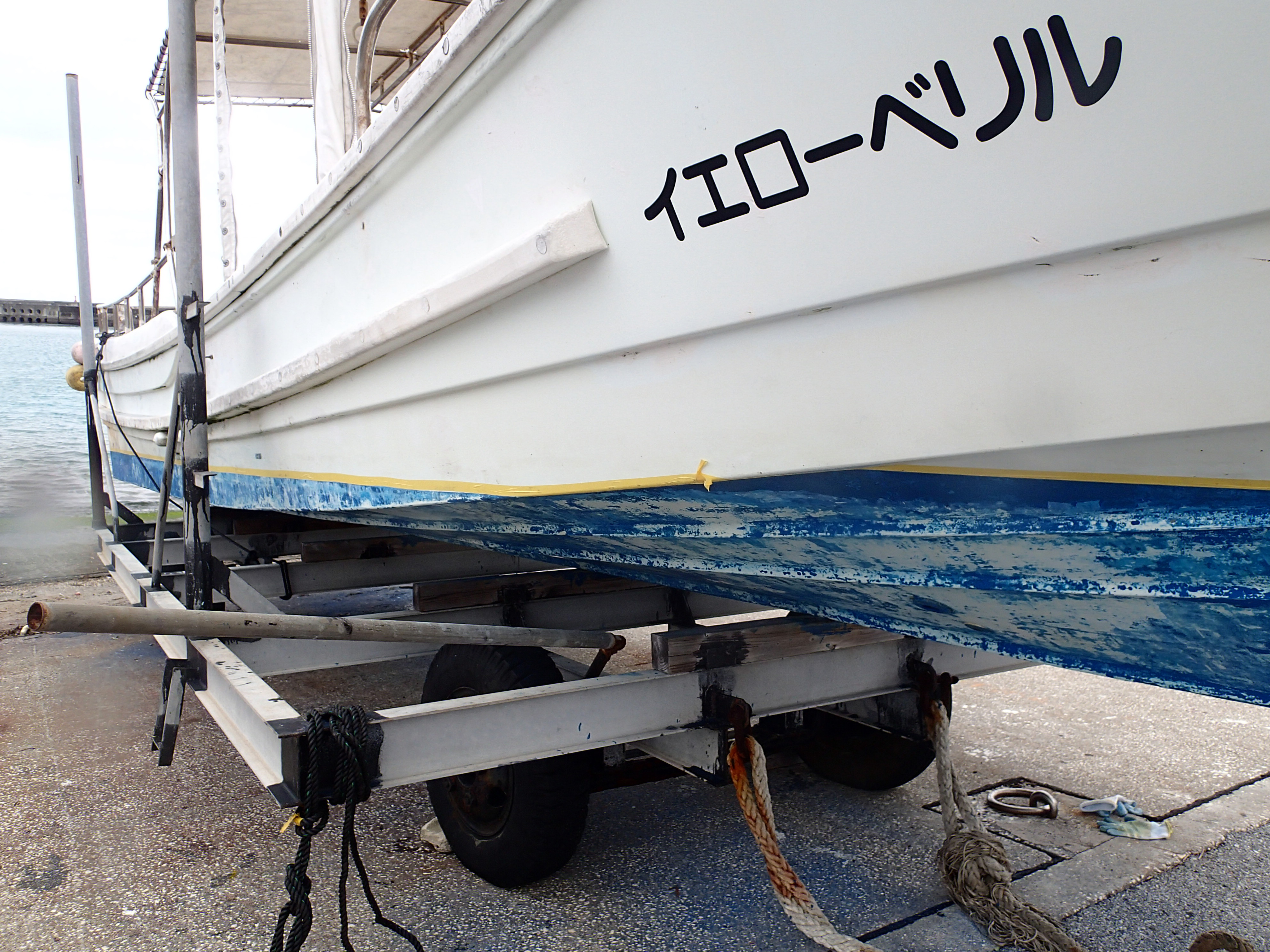 青い塗料が落ちて所々本来の船体の色が出てきました![]()