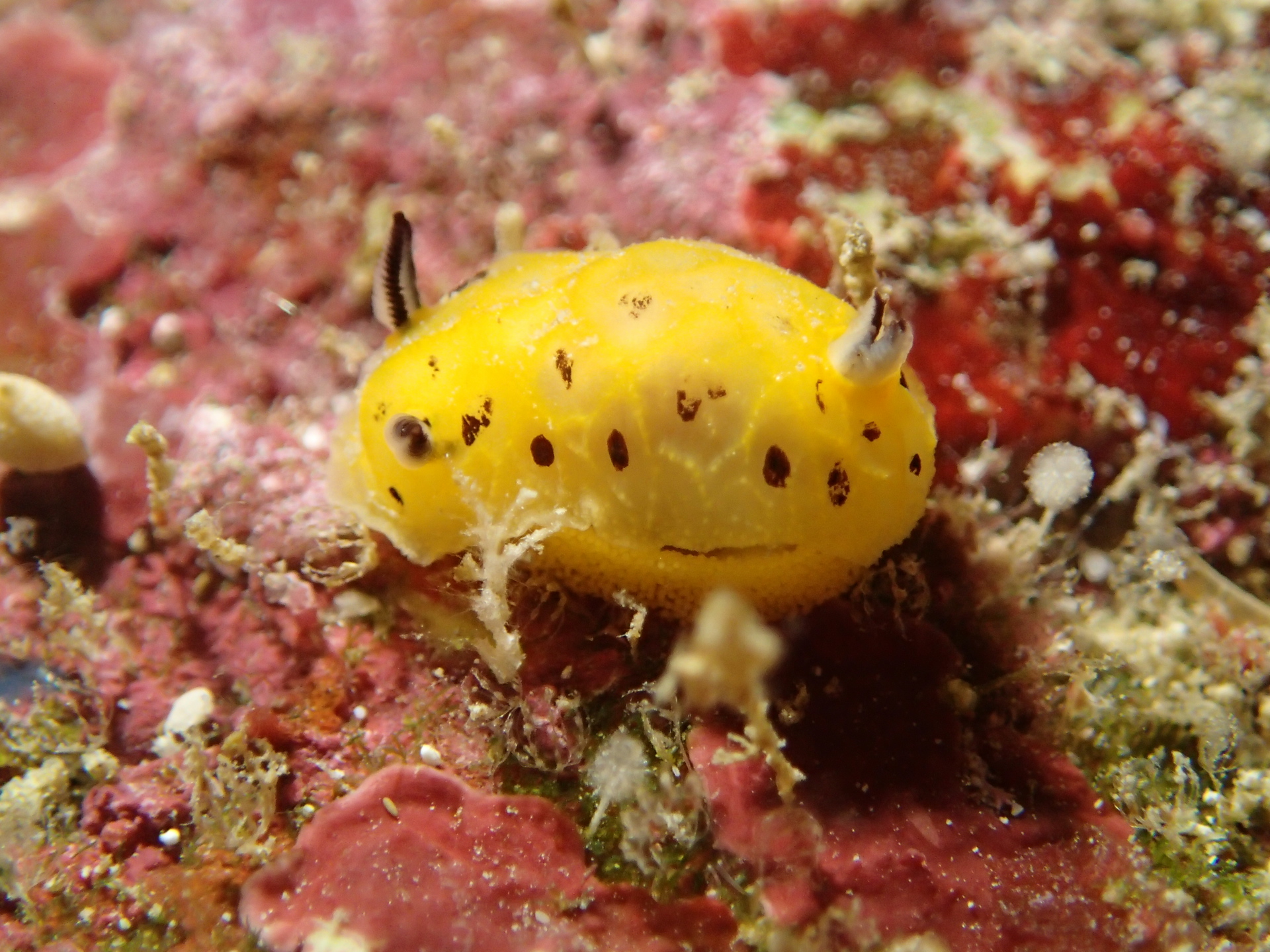 ウミウシの下?に黄色い帯状の物がありますがこれが卵ですね