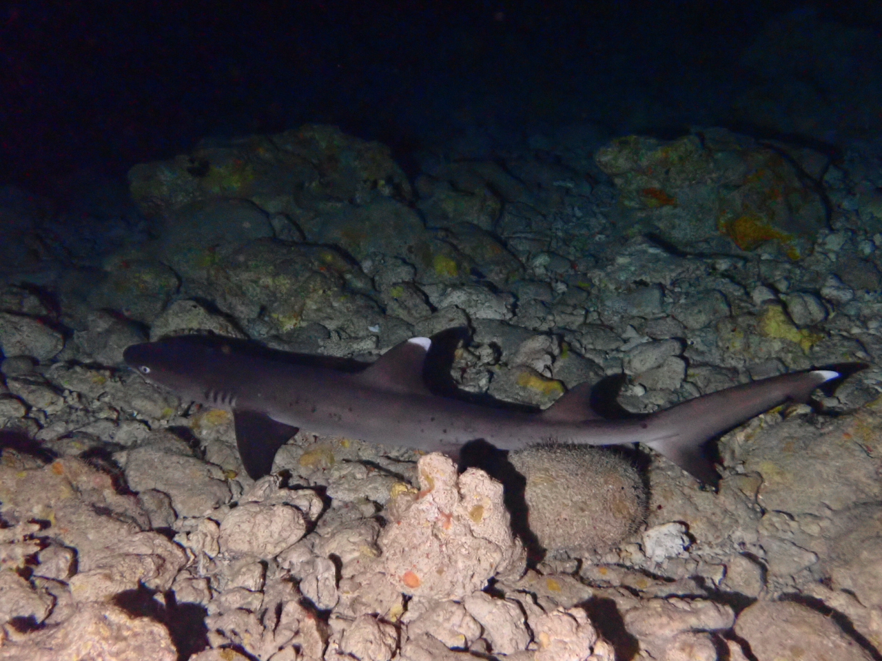 洞窟の暗がりには今日もネムリブカさんが睡眠中![]()