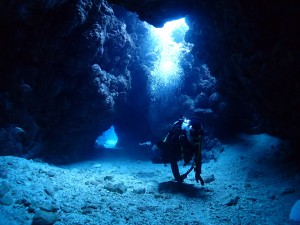 雨模様でしたが洞窟内は青く透明度の良い世界が広がってましたよ~![]()