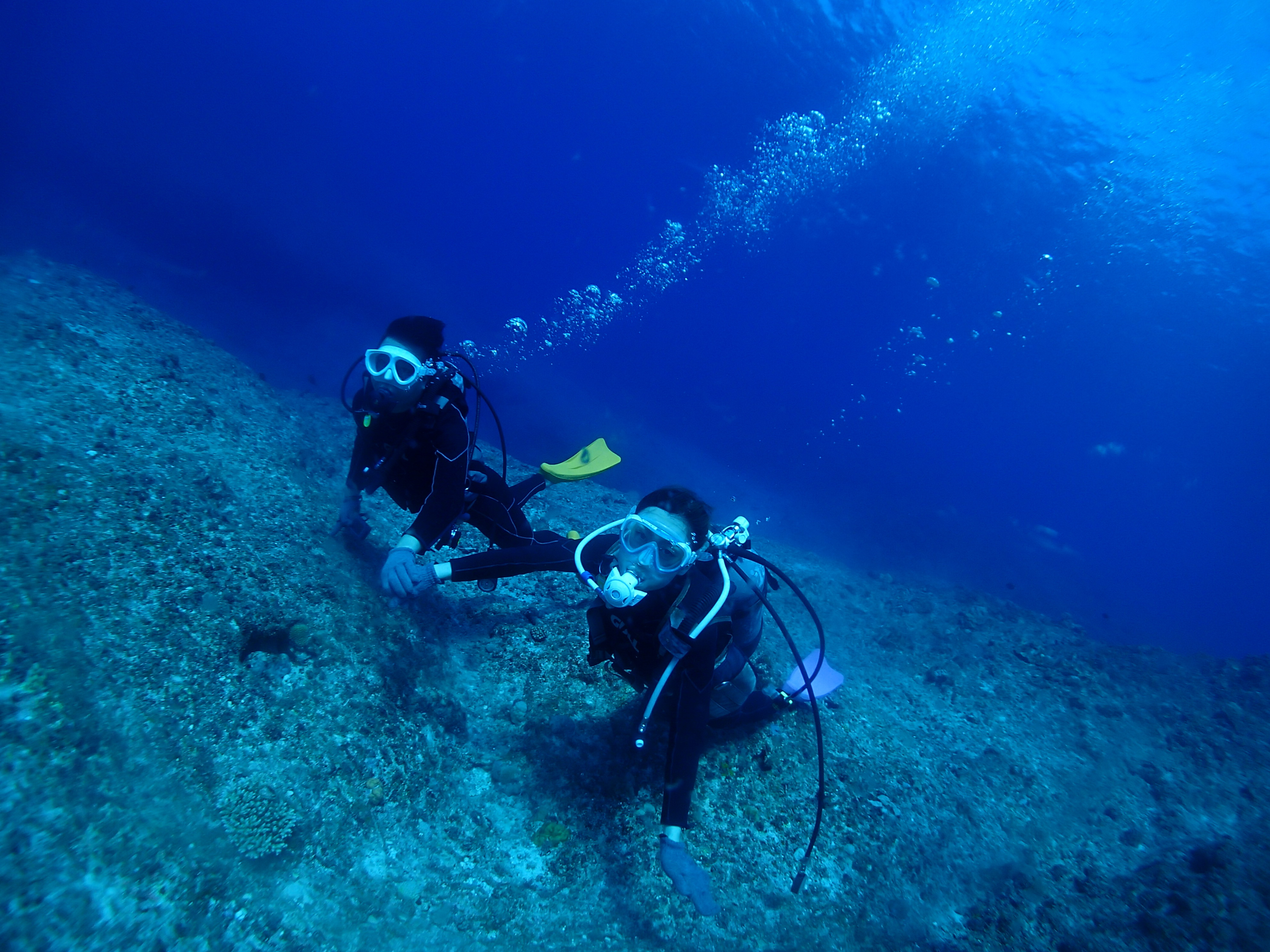 船上でもそうでしたが水中でも仲良く手を繋いでますね![]()
