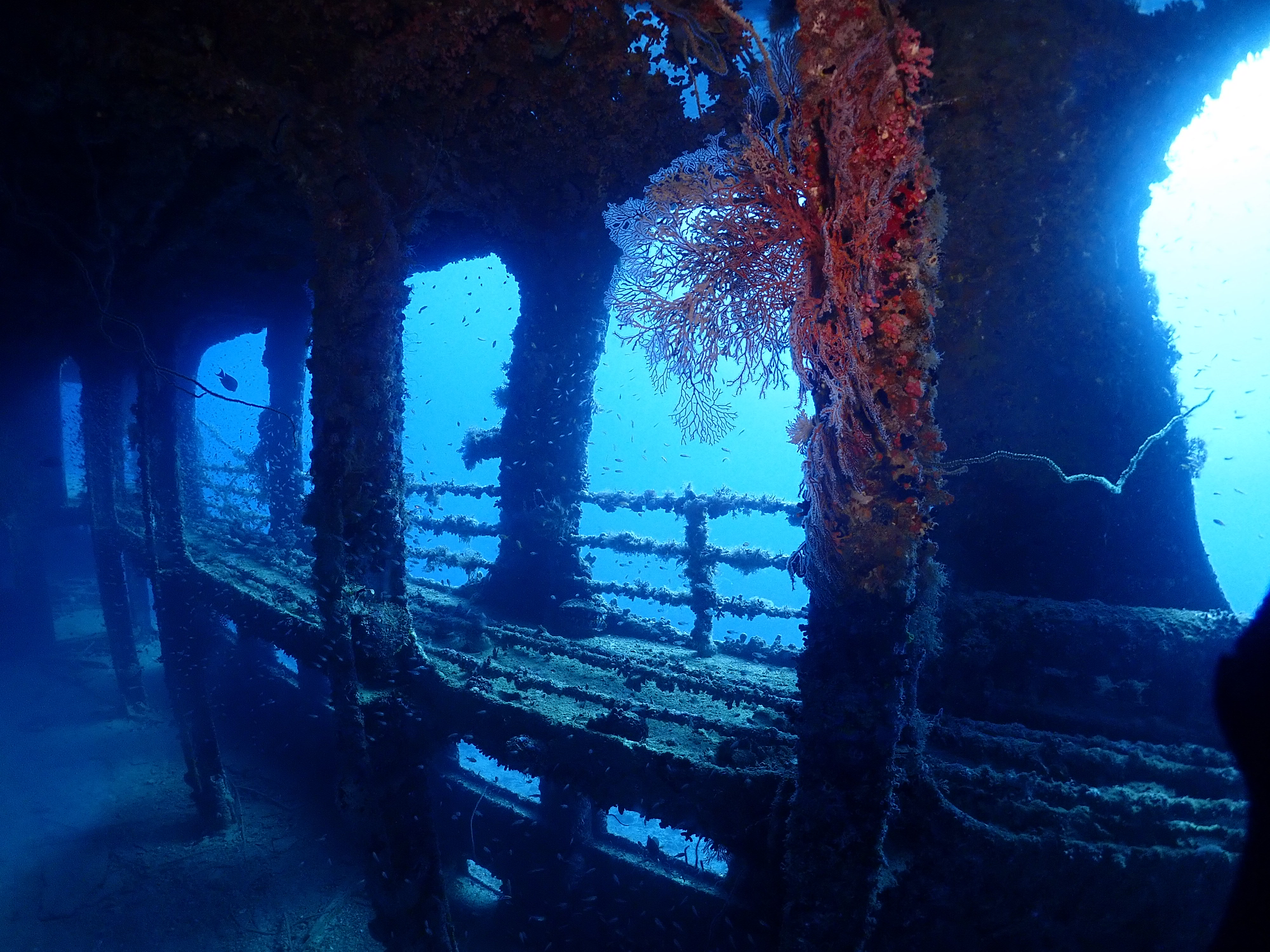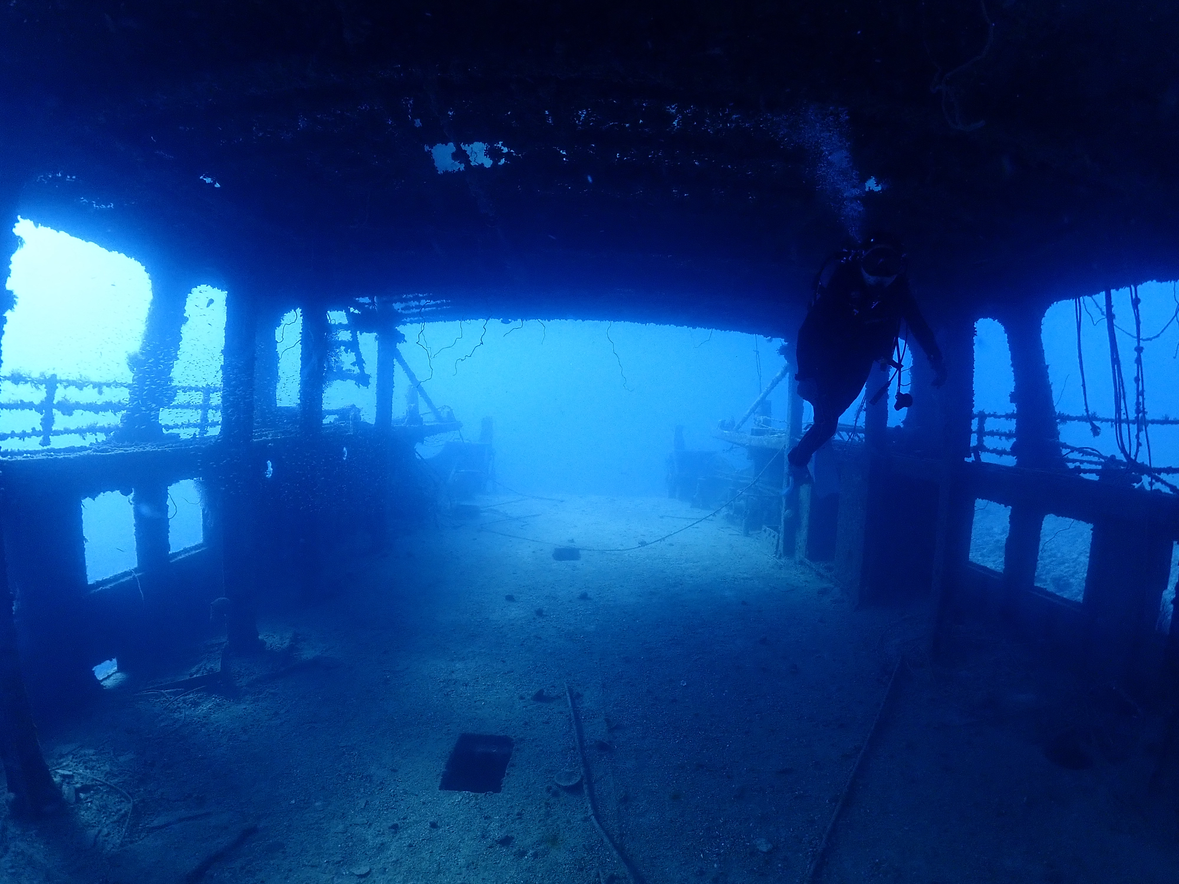 今日の沈船は透明度抜群でボートからでも水深20mにある沈船の形がハッキリ解る位綺麗でした![]()