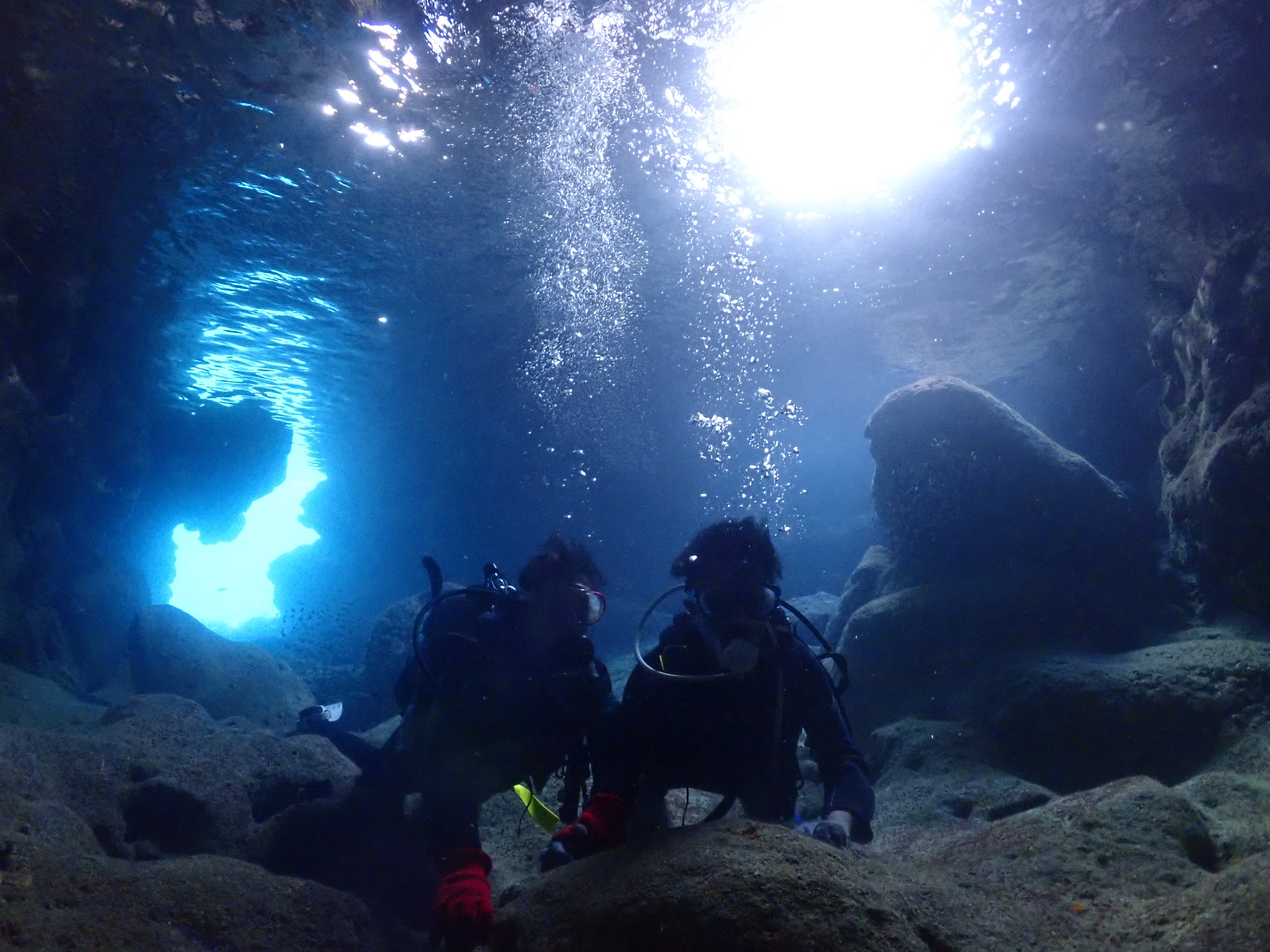 がキラキラしていて洞窟内を青く照らしてくれてます![]()