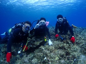 天候:晴れ 気温:32℃ 水温:29℃ 風向:東 波高:3m