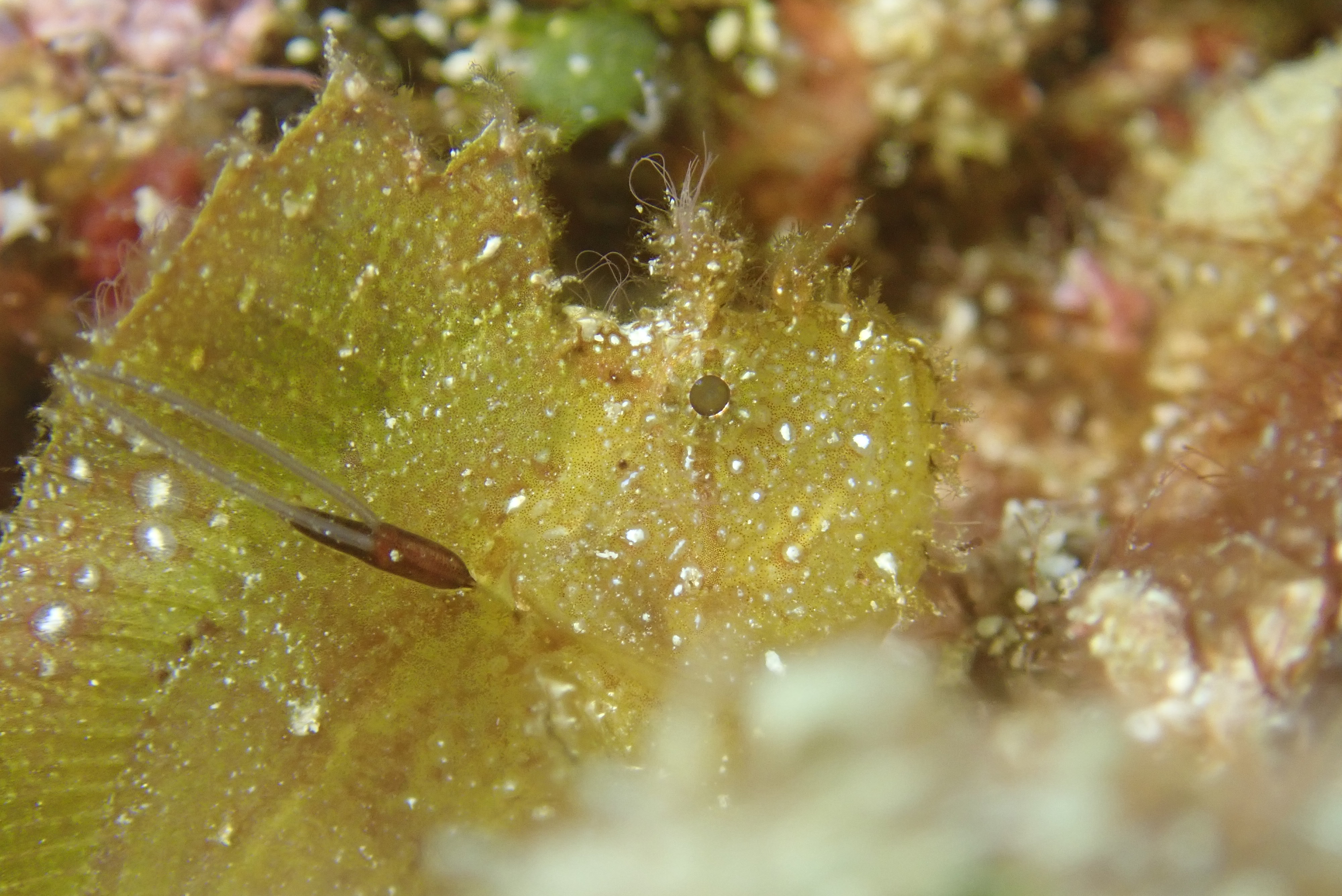 寄生虫が成長し始めたハダカハオコゼ 小さなオアウミガメさんとゆっくり撮影