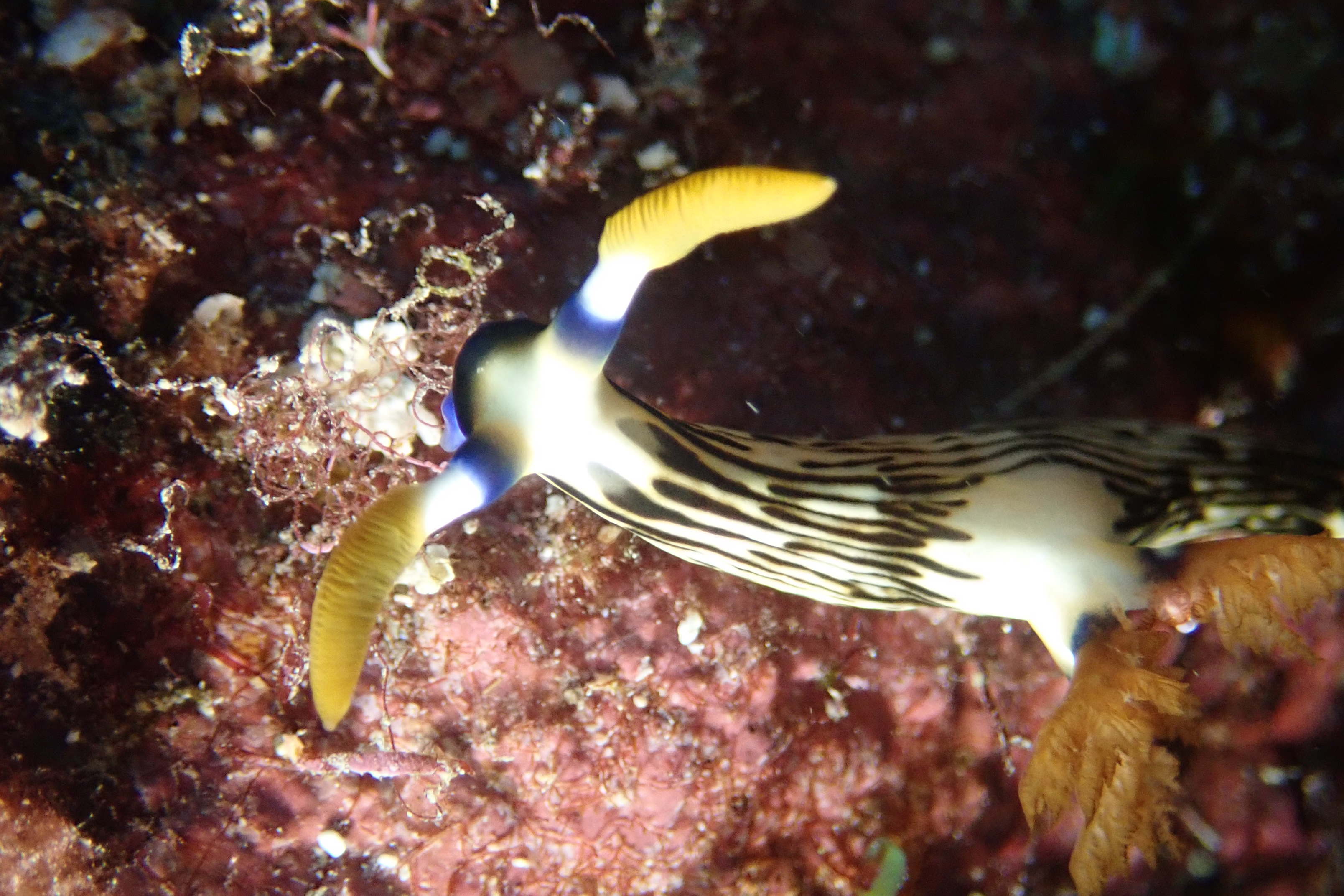 お散歩中のコールマンウミウシ と のび~~~とクロスジリュウグウウミウシ