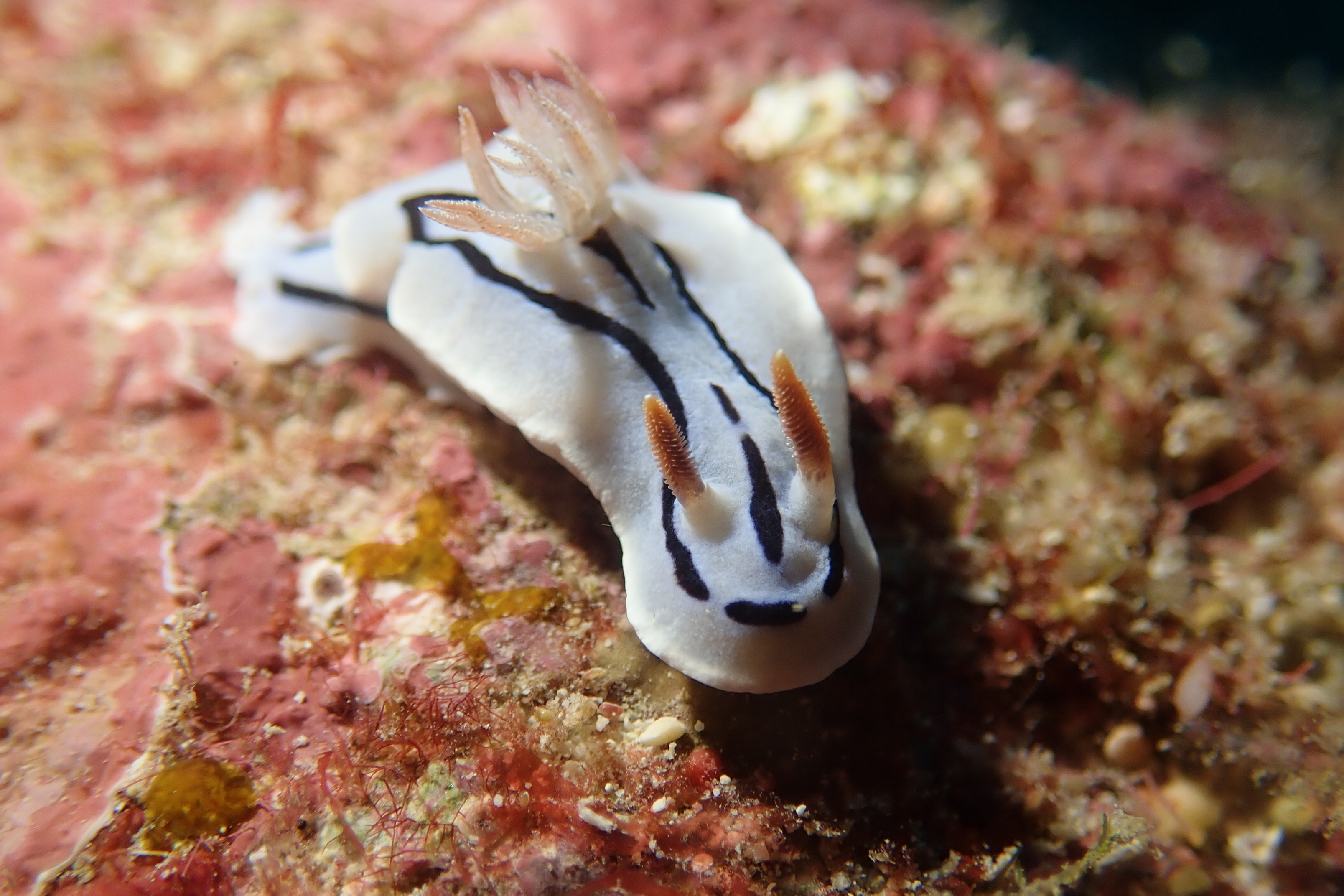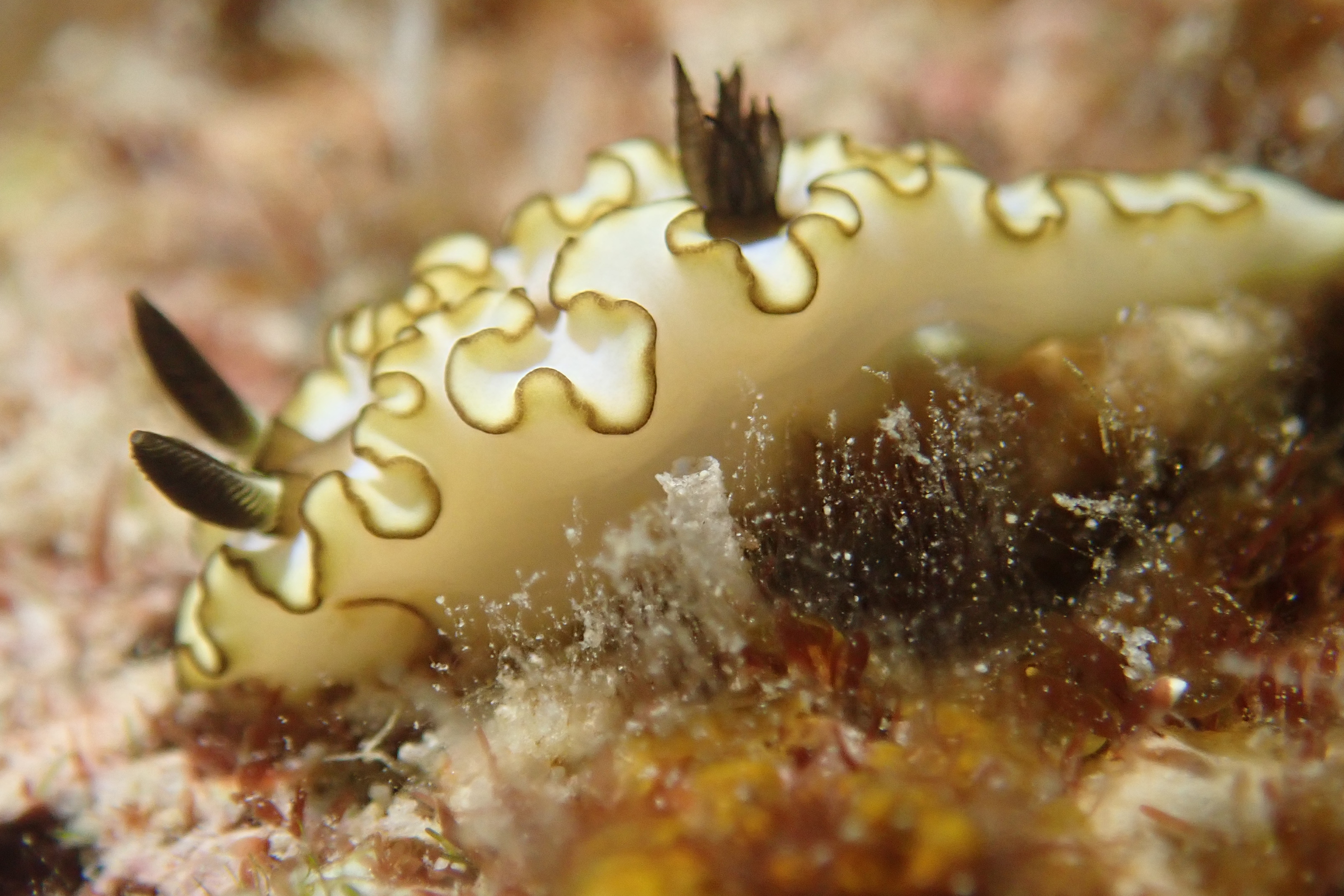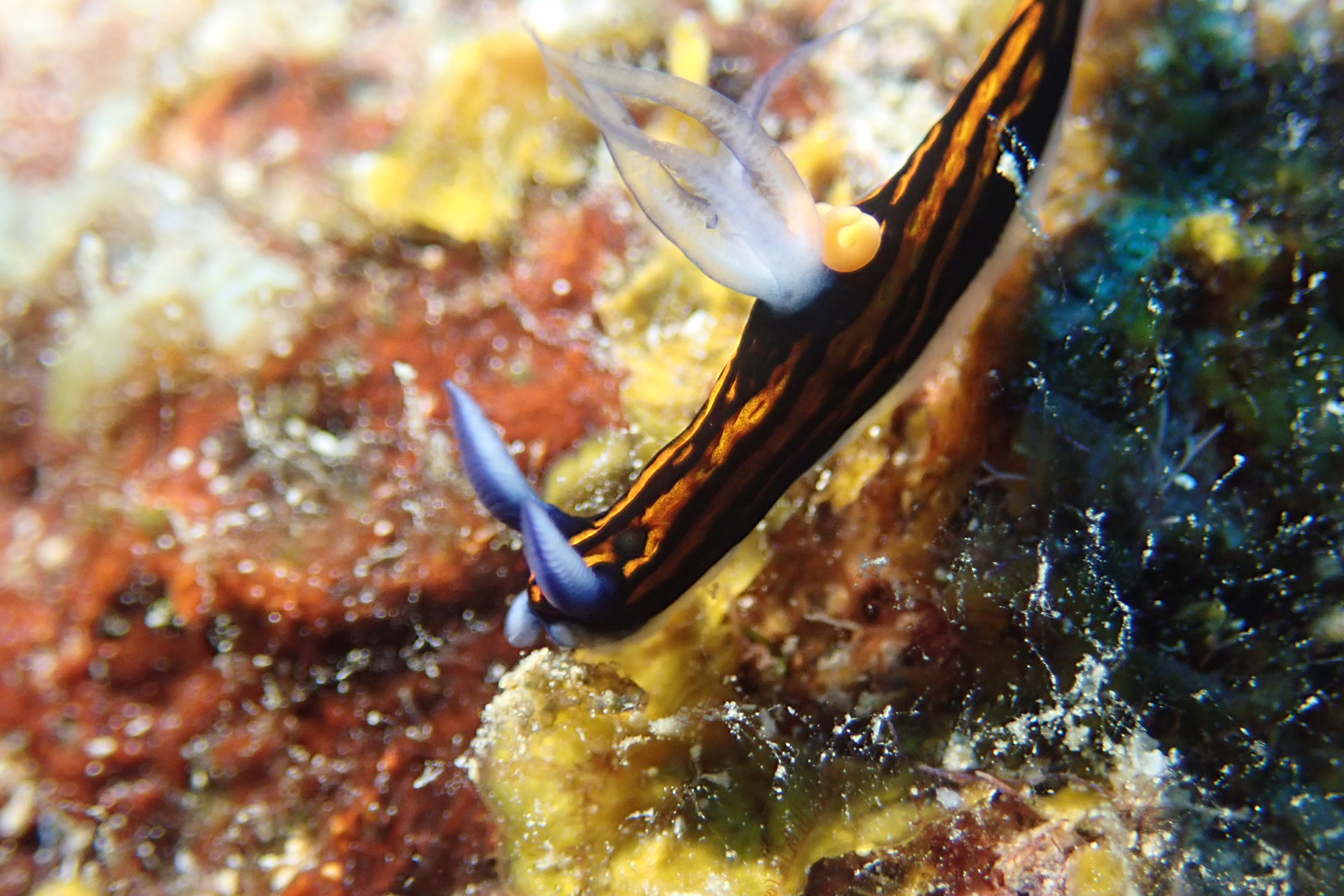 コペポーダを背負ったリュウグウウミウシ と 近くに居たキイロウミウシ