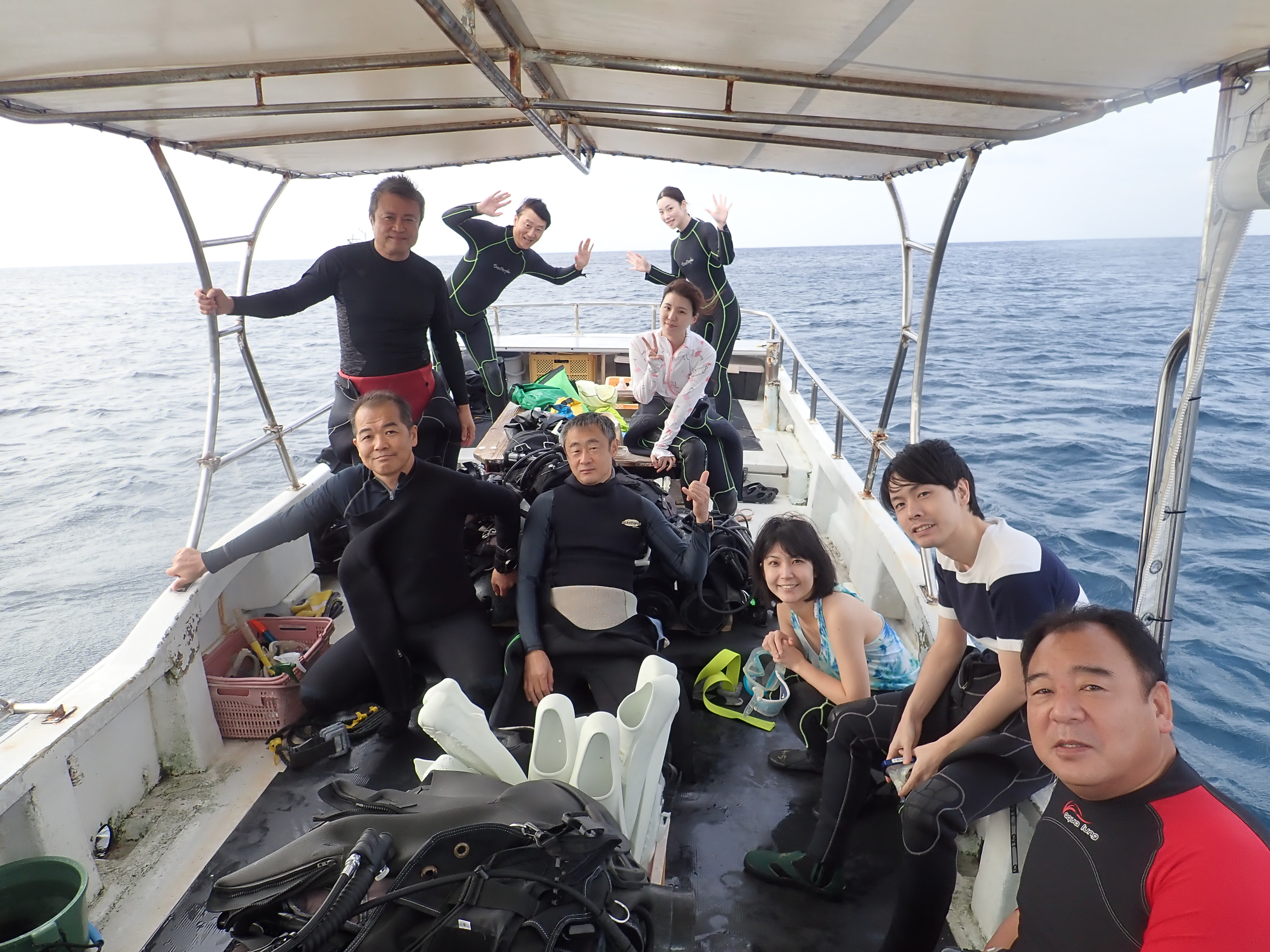 ファンダイビングチーム2組と体験ダイビングチーム2組と一緒に下地島方面へ![]()