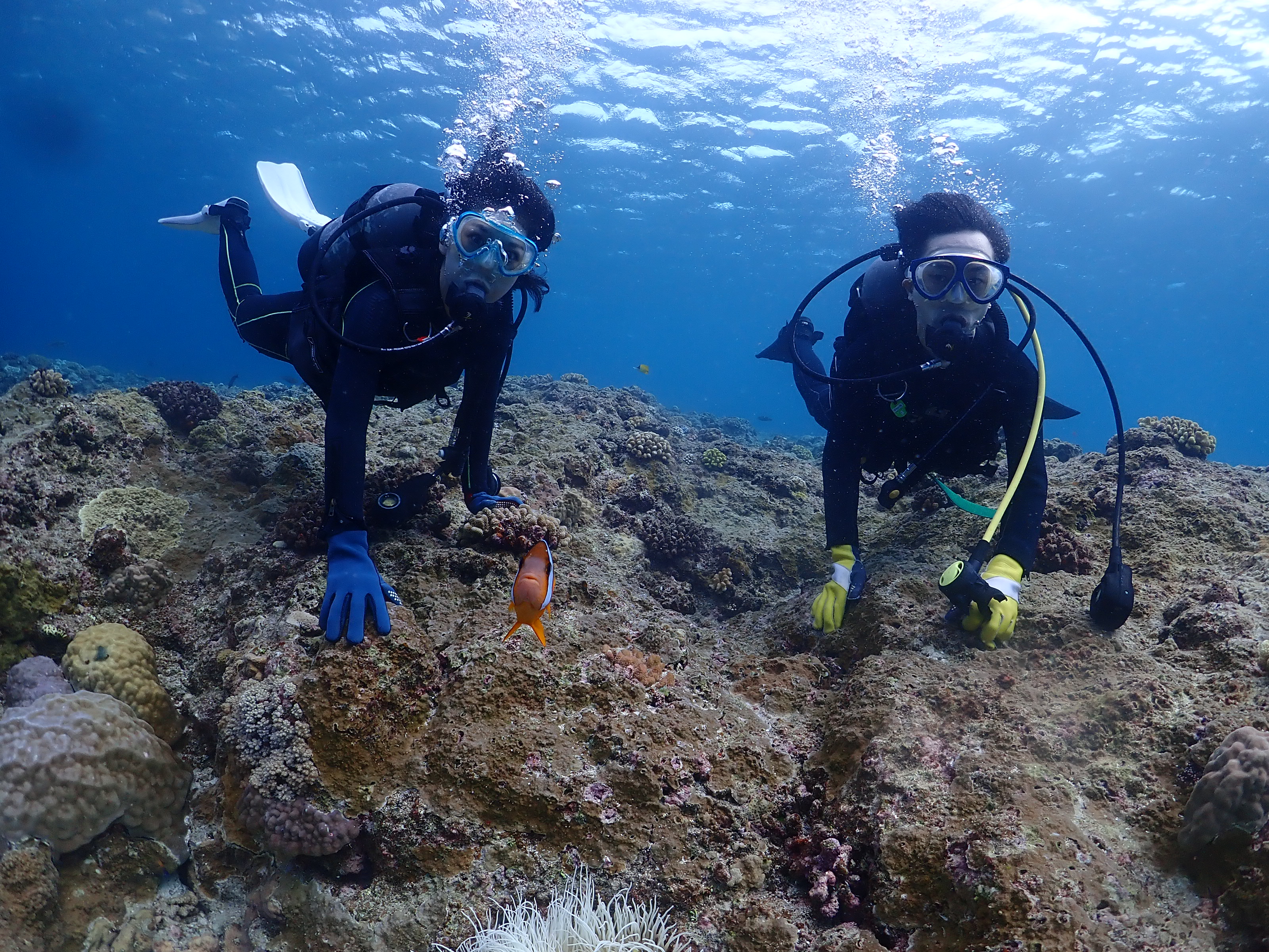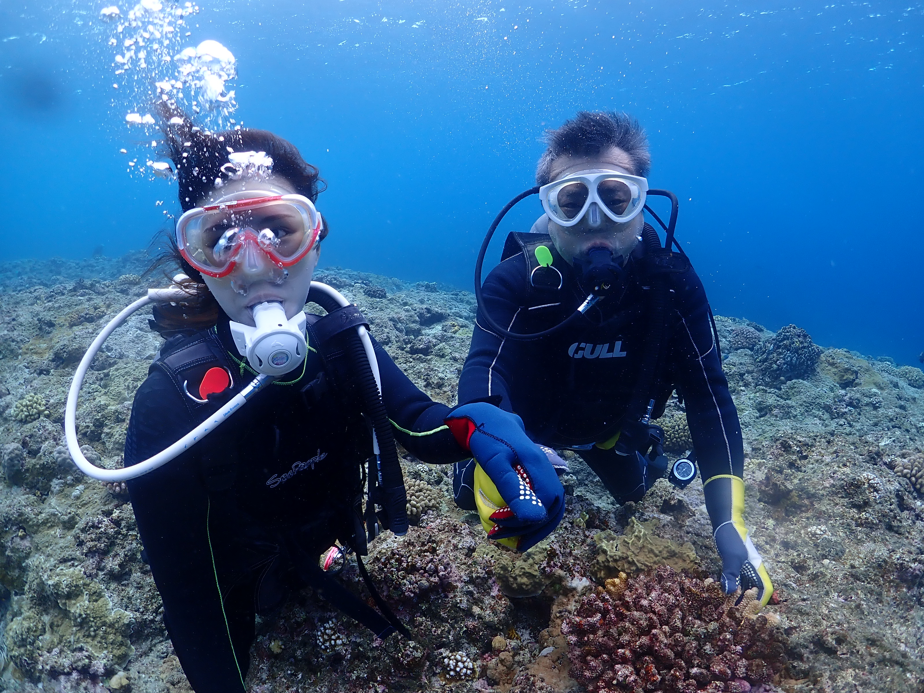 先ずは1組目、男性はファンダイバーで女性に体験ダイビングを楽しんでもらうためにご参加です。