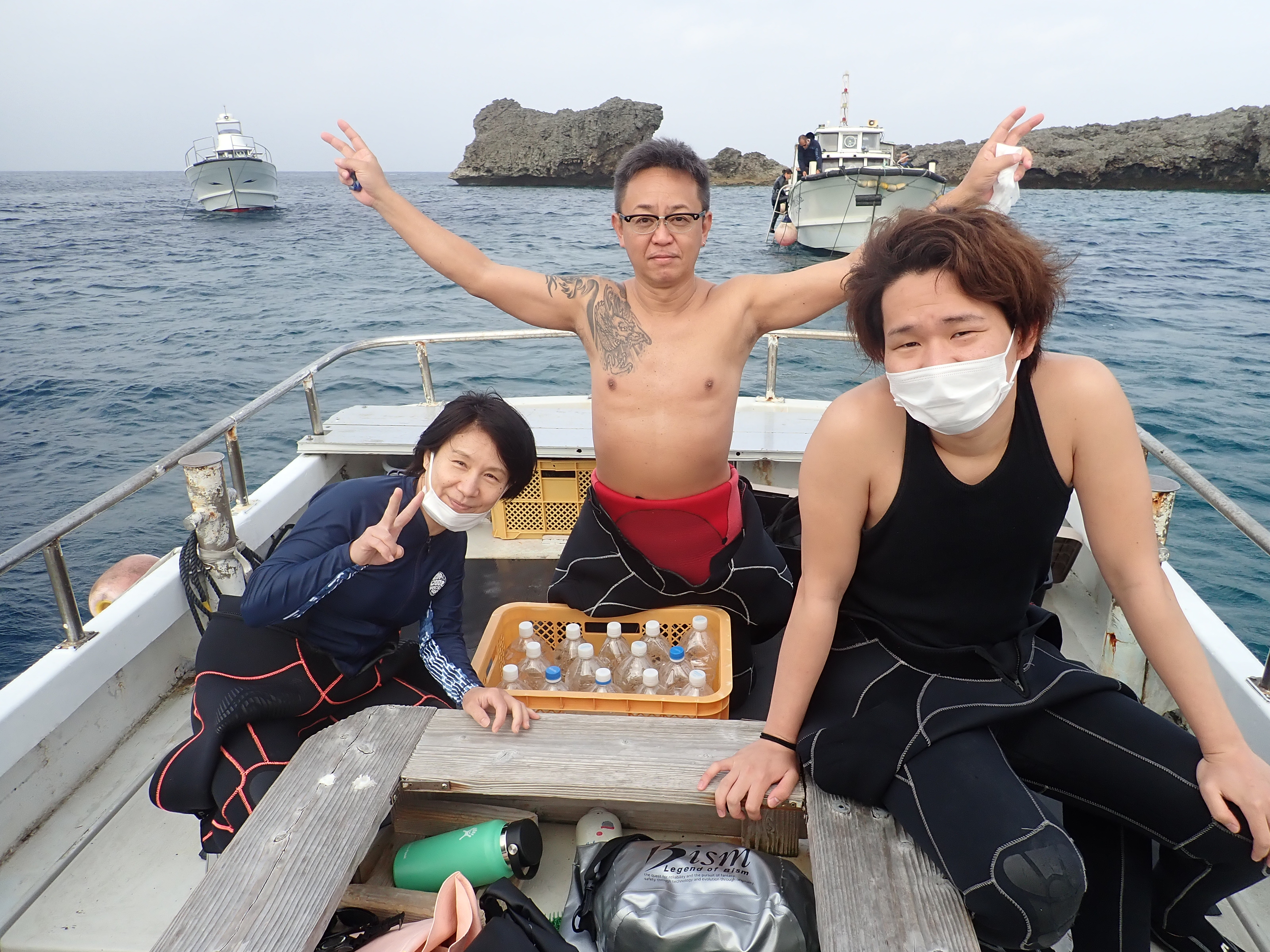 ご両親と息子さんの3人お母さんは今回が初めてのダイビングで緊張気味
