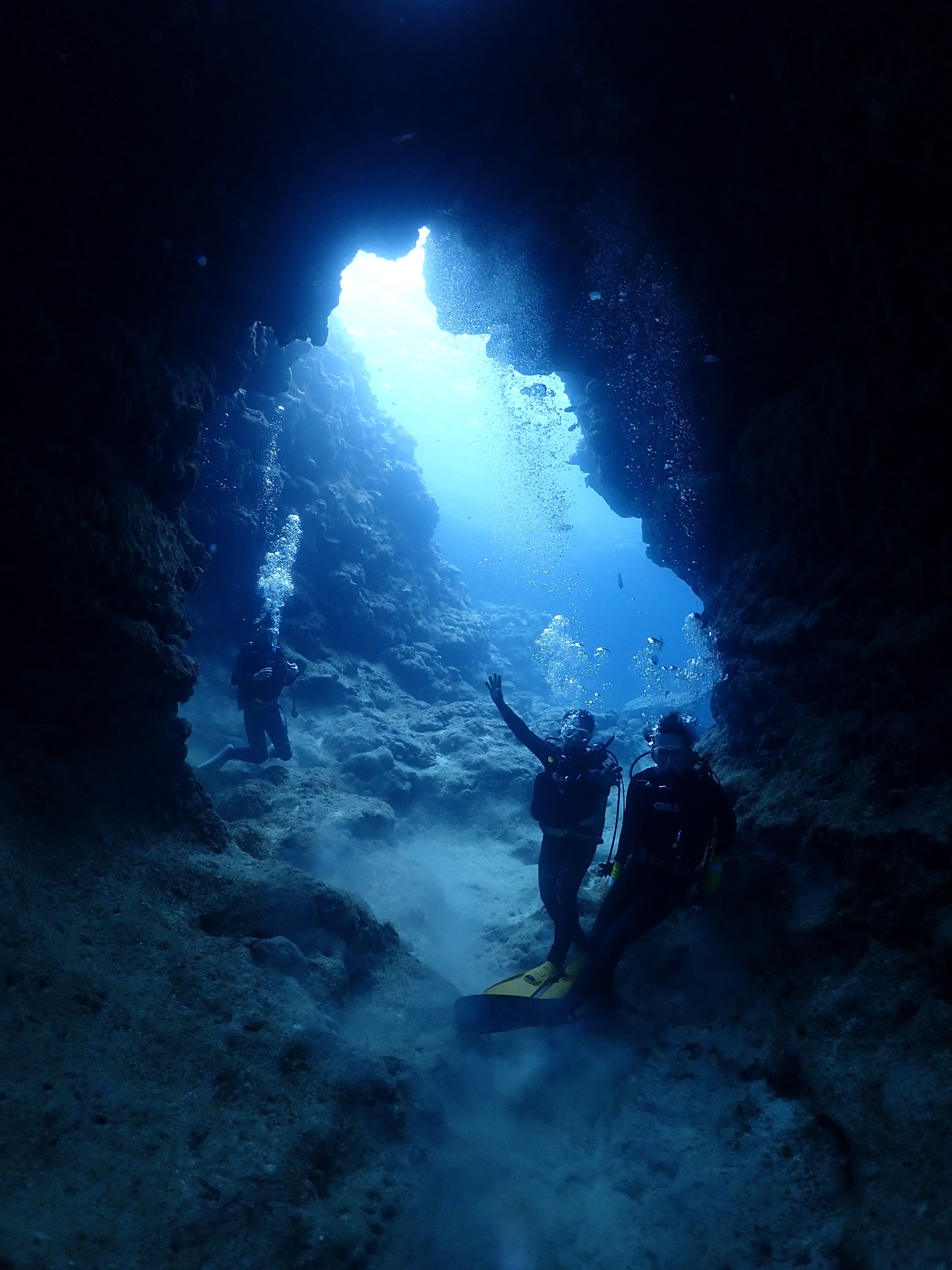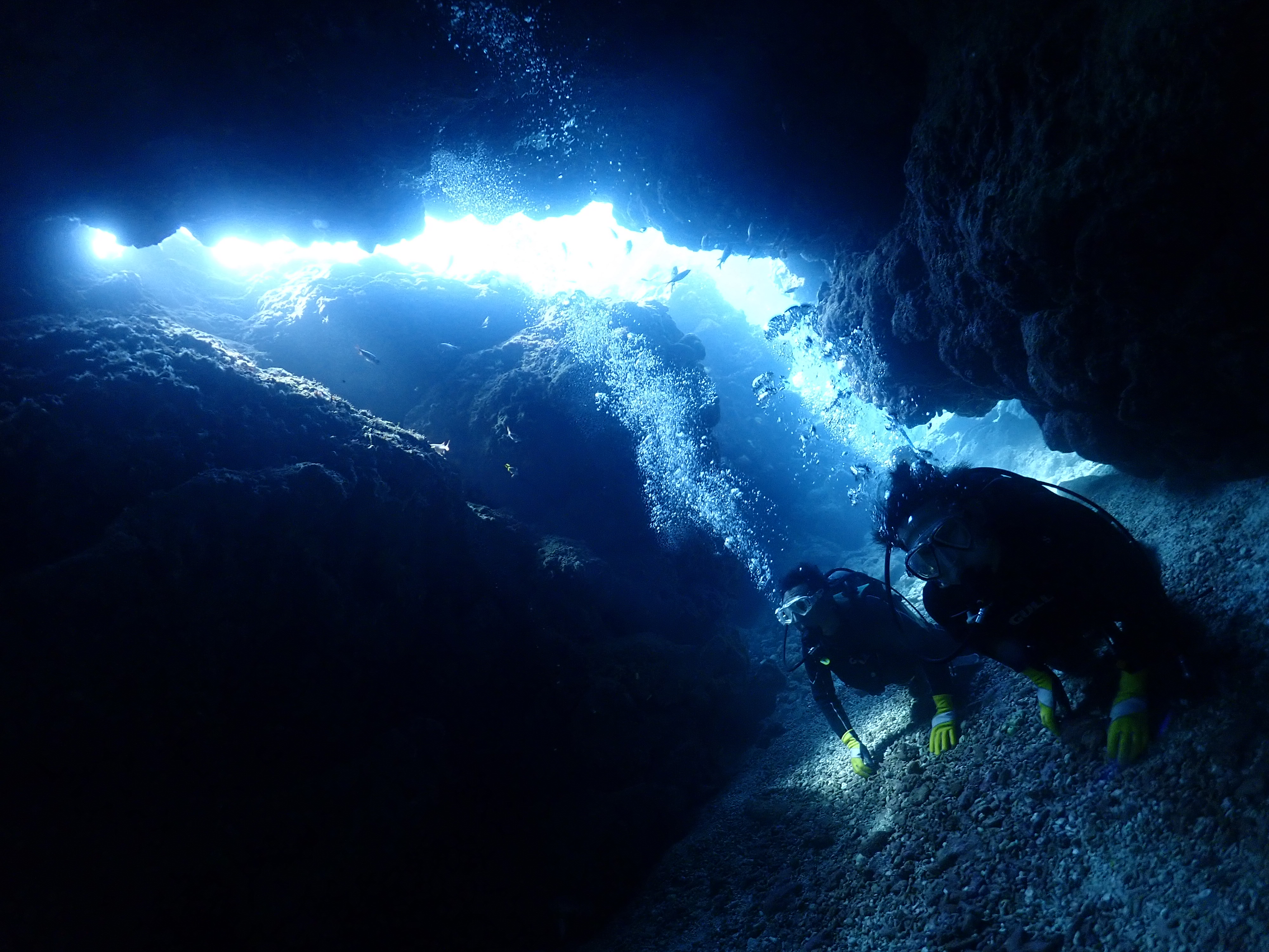 2ダイブ目はお父さんと息子君の2人でプチ洞窟探検へ