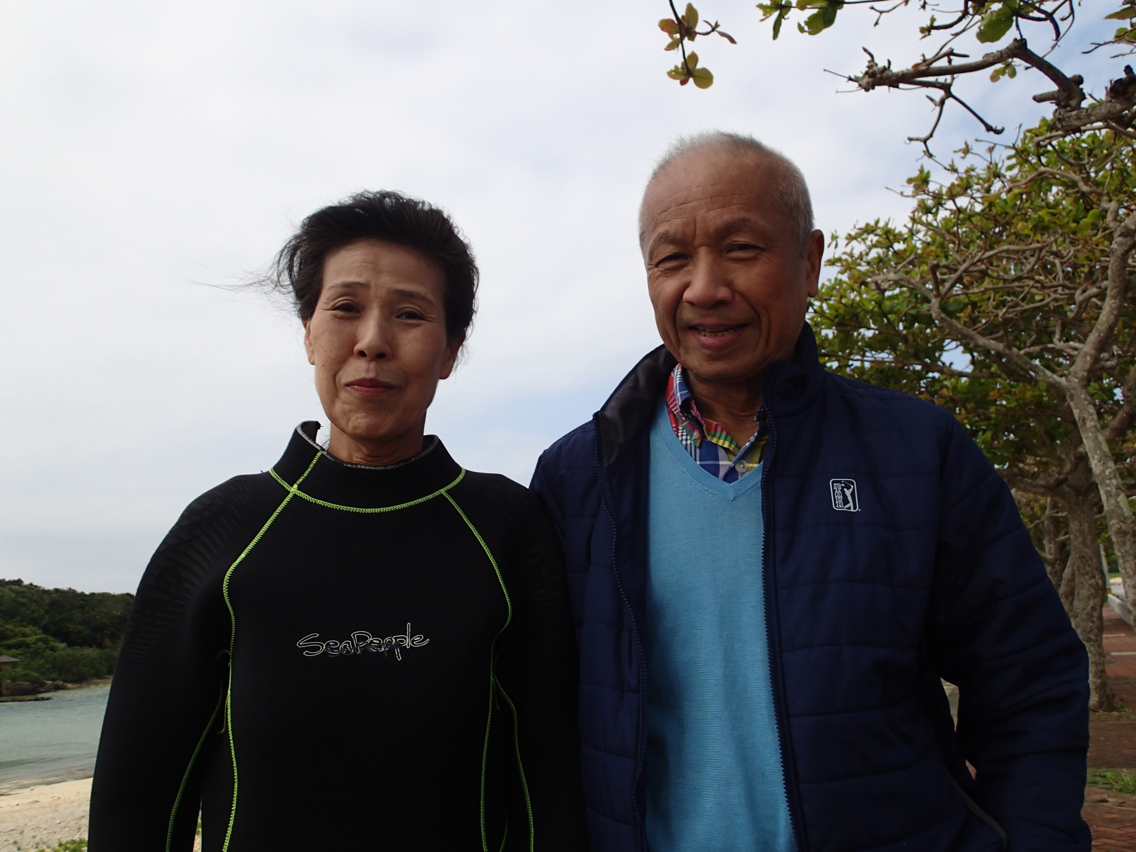 ご夫婦の奥さんが、今回、初ダイビングに挑戦です![]()