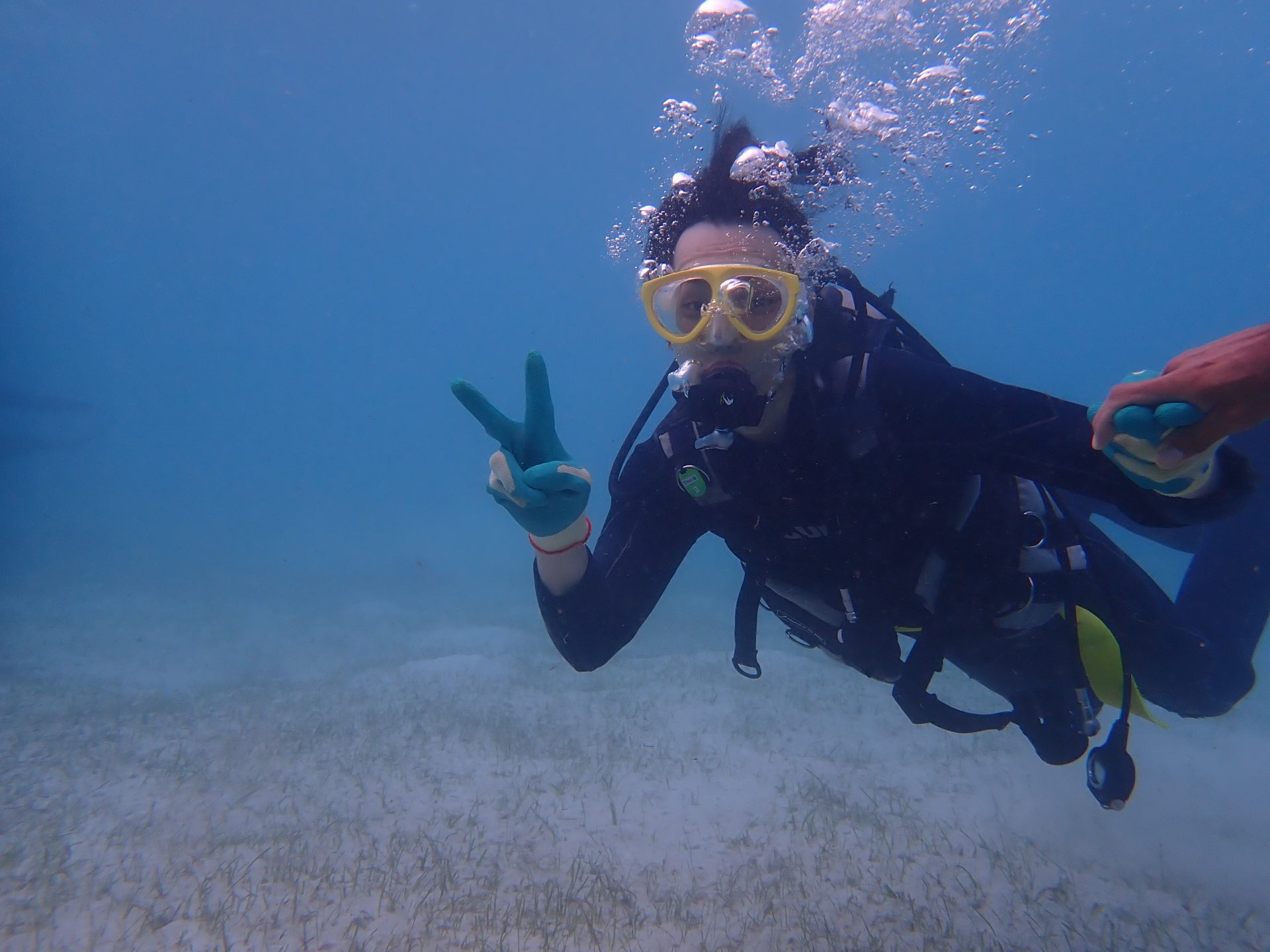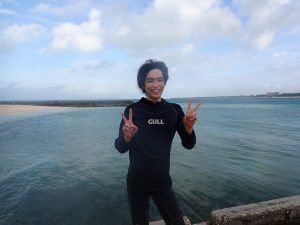 今日は台風の影響で南寄りの風が吹いて来間ビーチで体験ダイビングへ