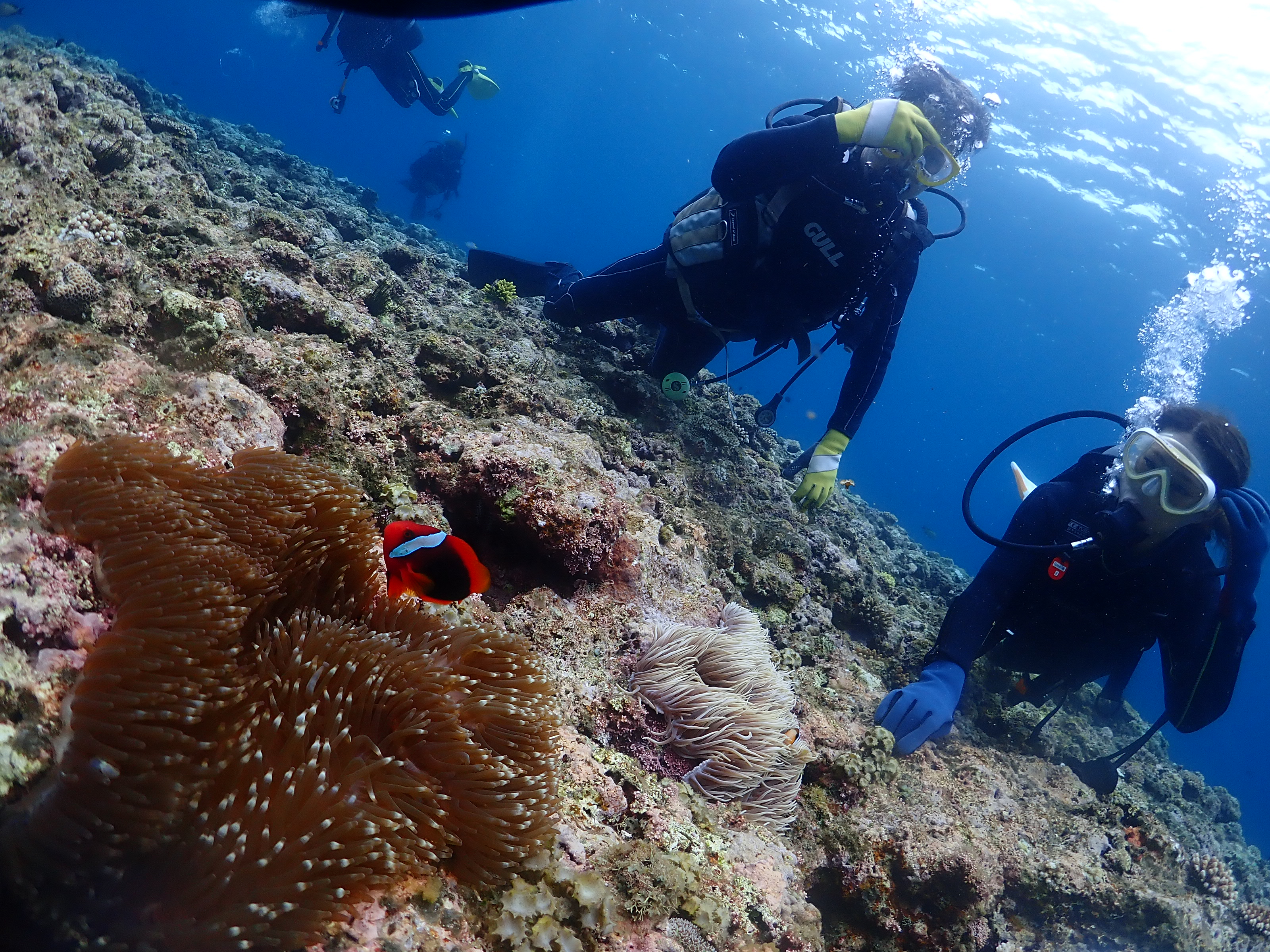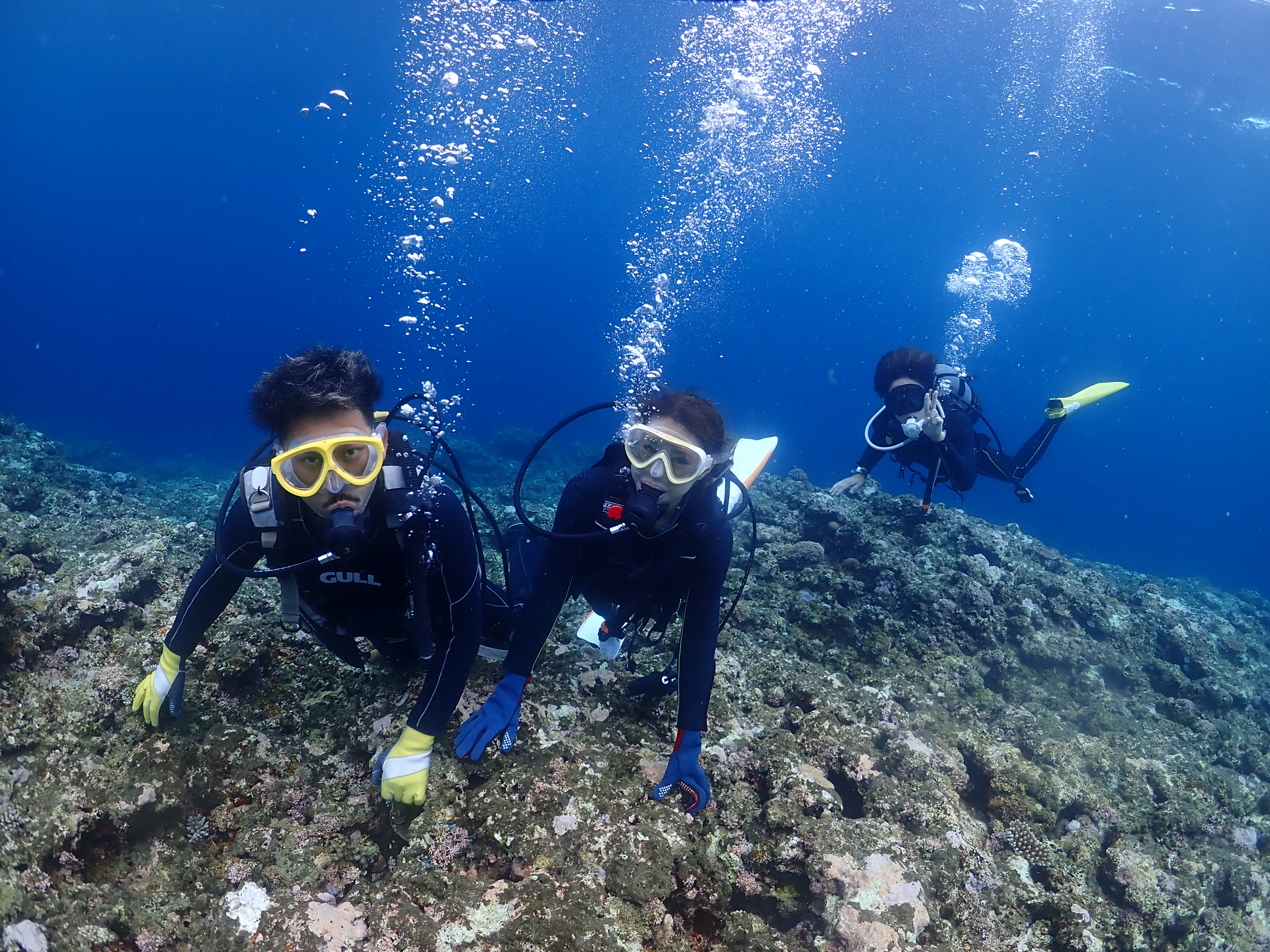 3人は今回が初めての体験ダイビングでお一人は200本オーバーのファンダイバー