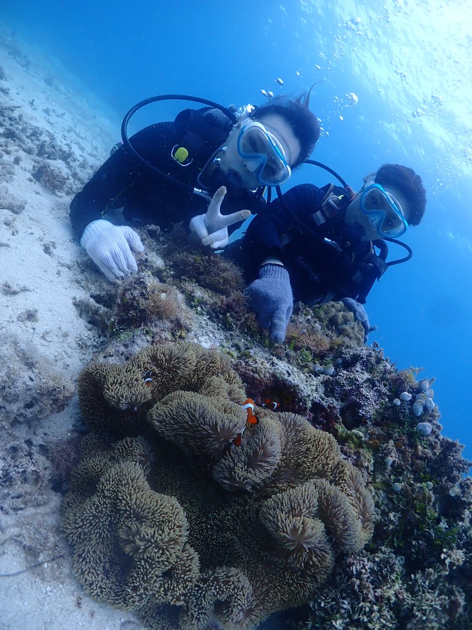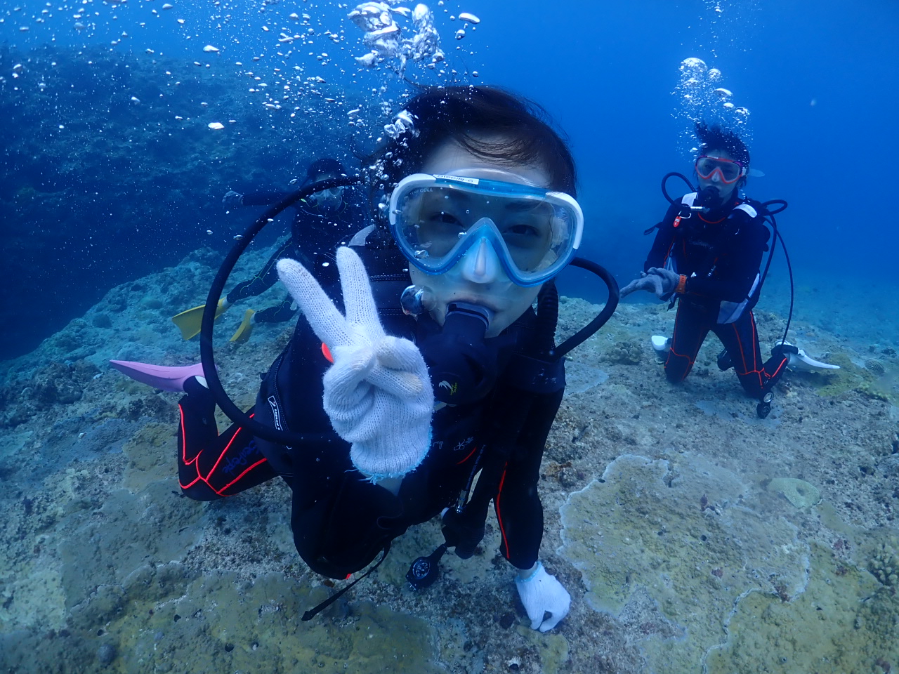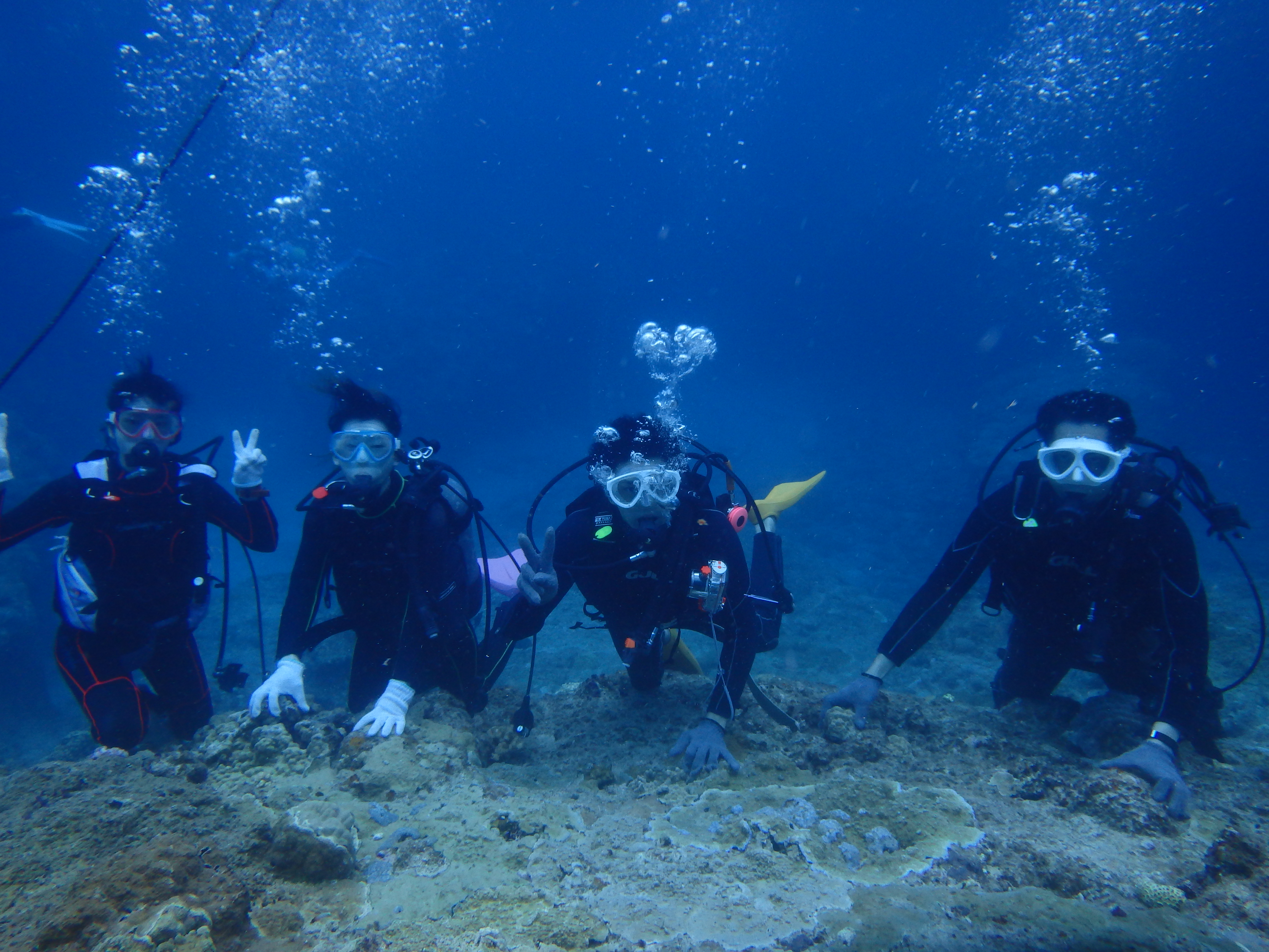 こちらは社員旅行中の皆様で、仲良く体験ダイビングです![]()