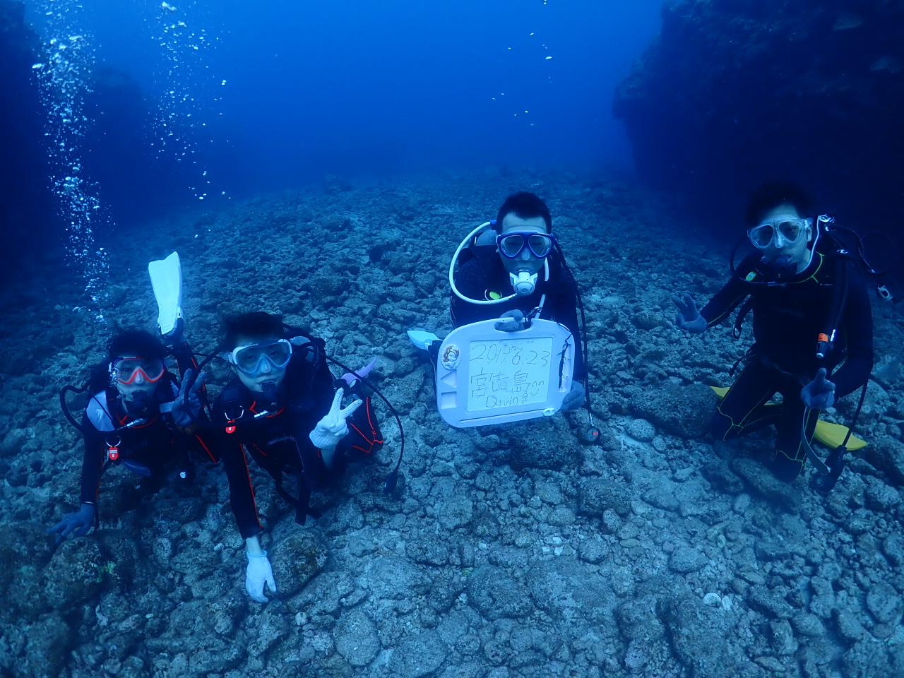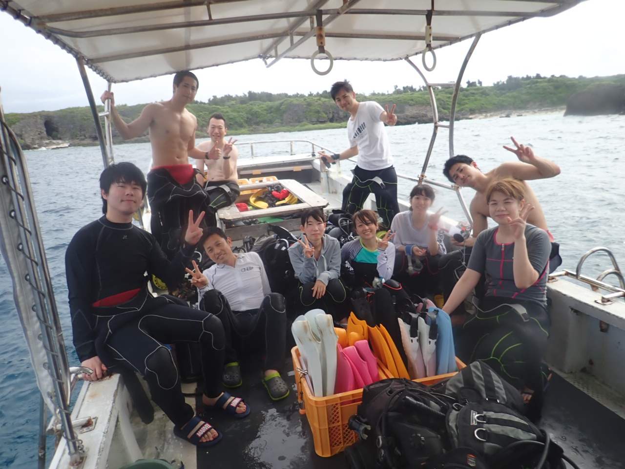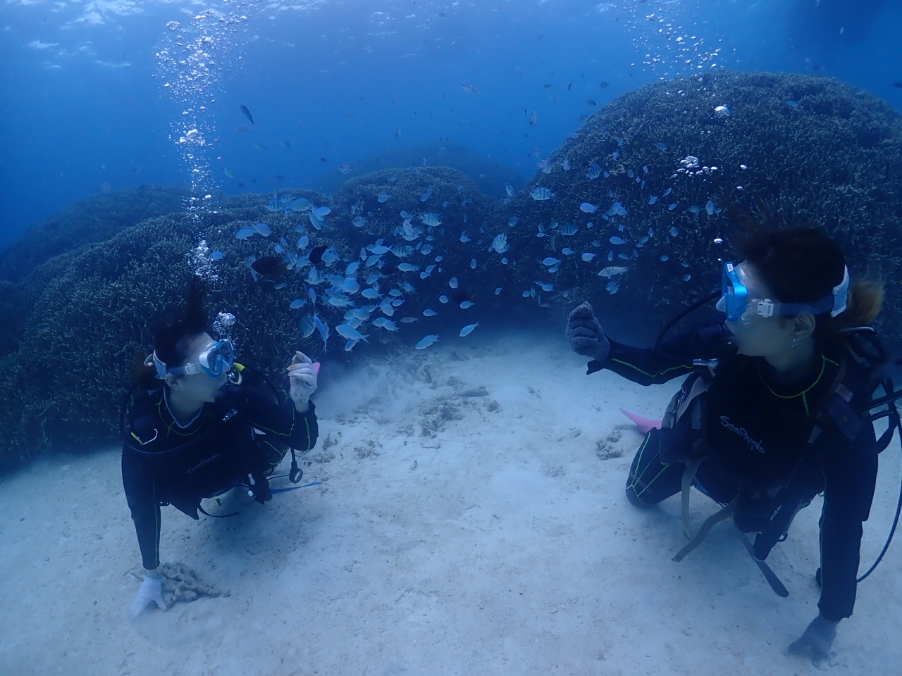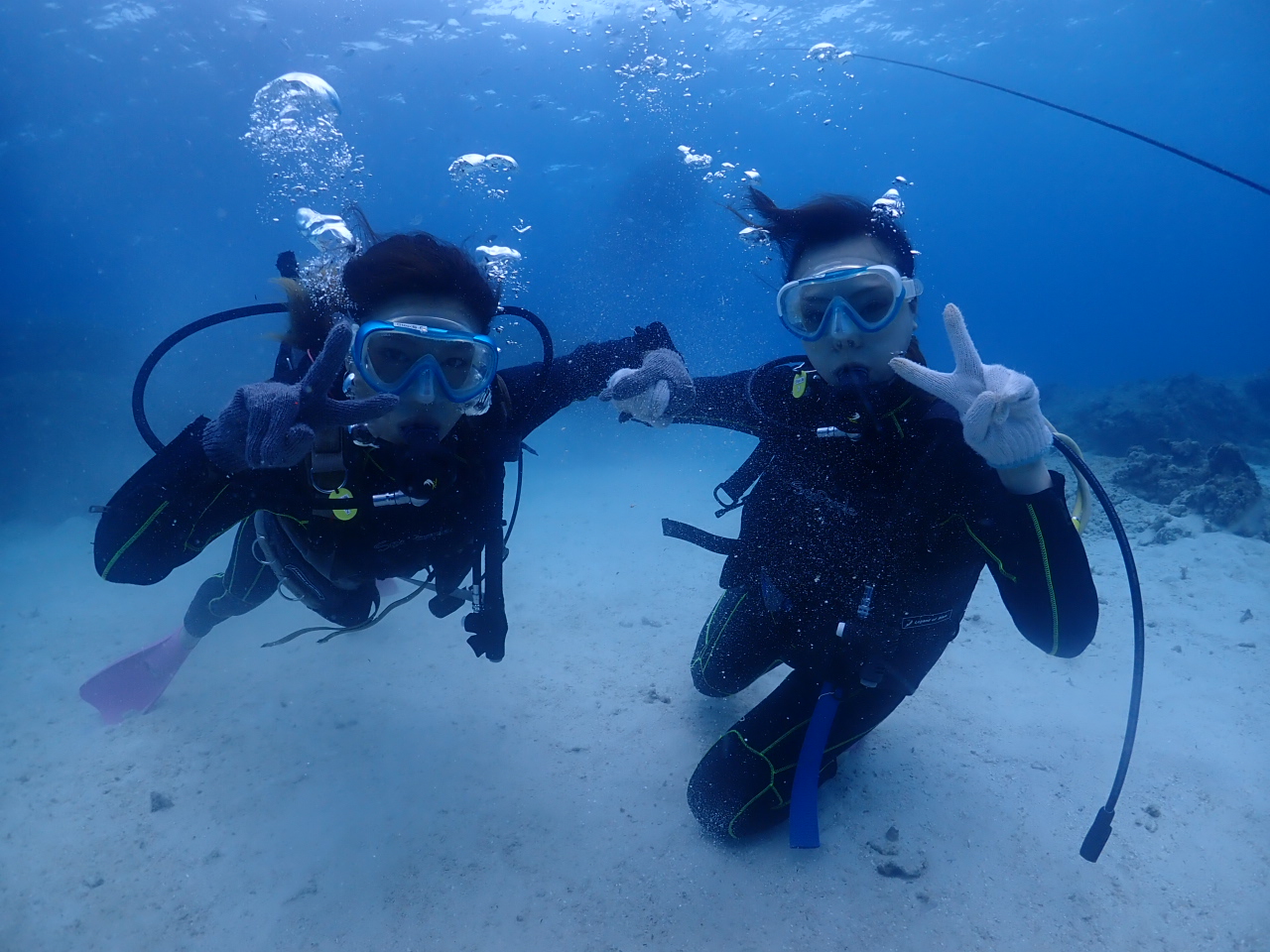 こちらは社員旅行中の皆様で、仲良く体験ダイビングです![]()