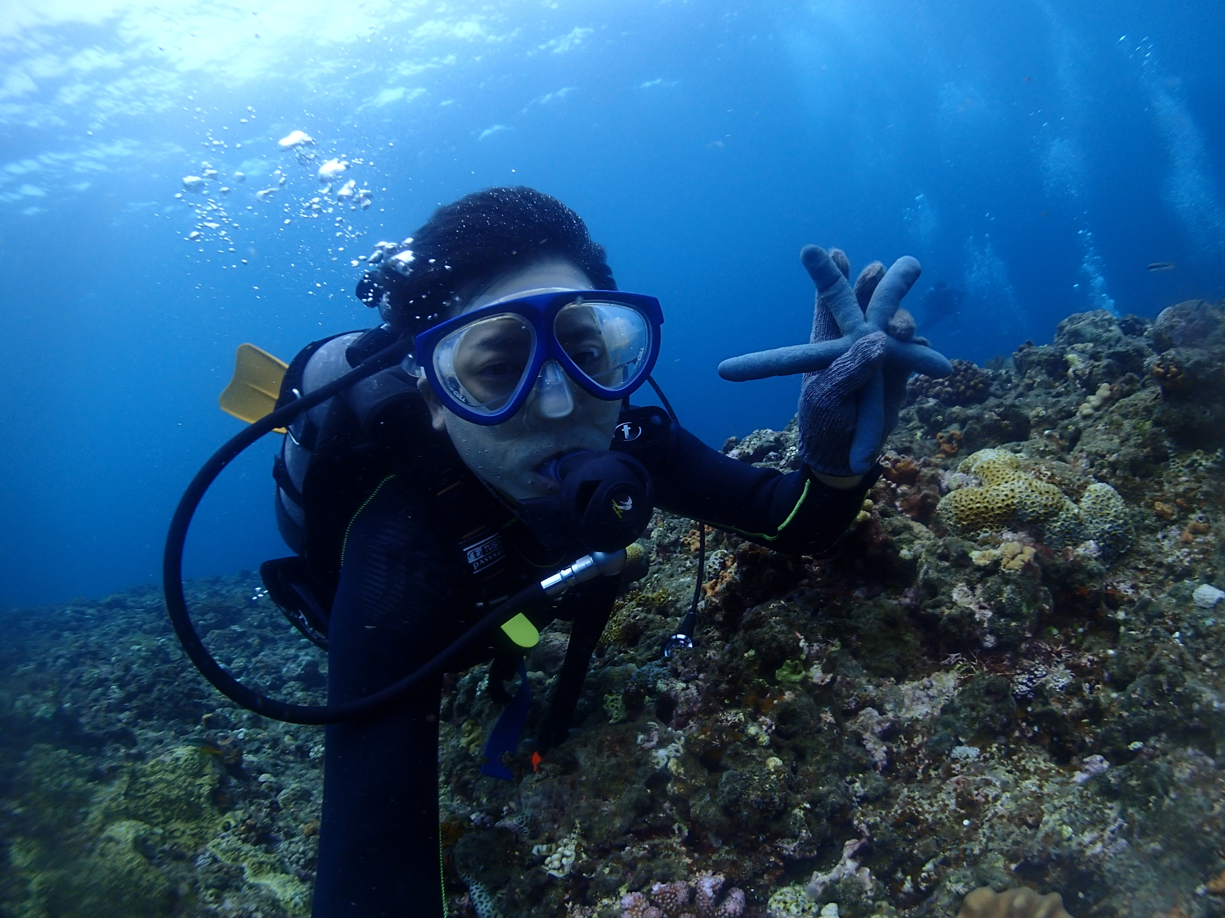 大きなシャコガイや、ヒトデを発見![]()