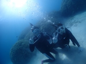 今回の体験ダイビングを楽しみにご来島のご夫婦旦那さんの姿がお茶目です![]()