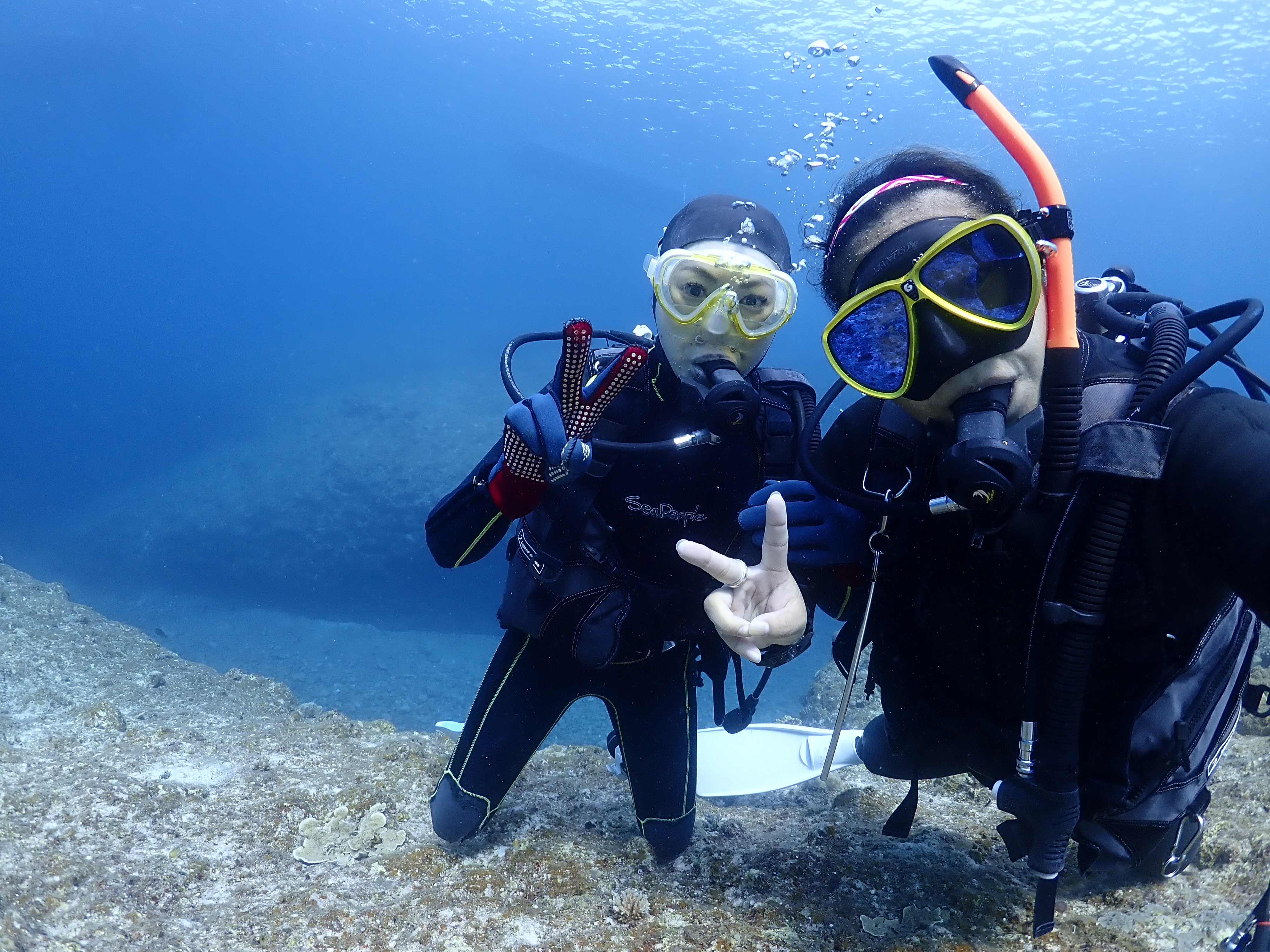 今回が初めてのダイビングでしたが少しの練習で簡単に潜る事が出来ました![]()